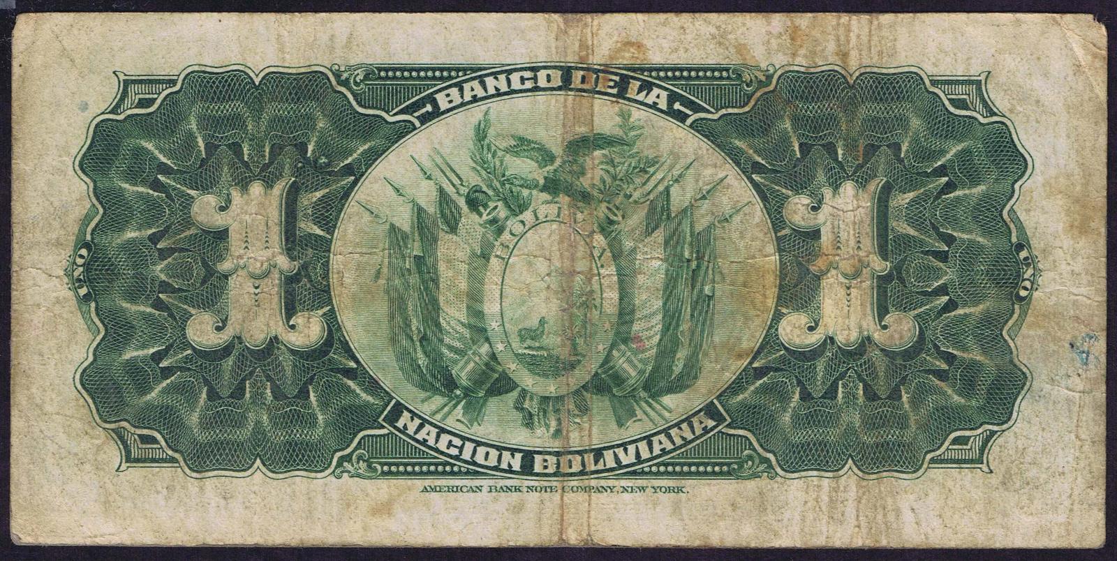 Bolivia pick 102b: 1 Boliviano from 1911