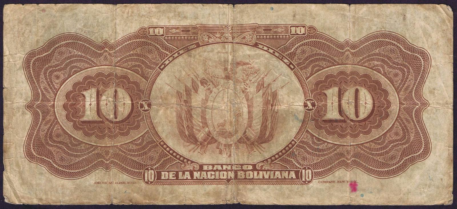 Bolivia pick 114a: 10 Bolivianos from 1929