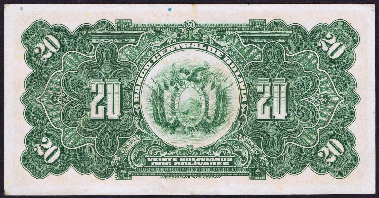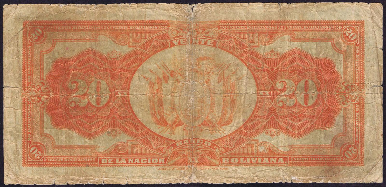Bolivia pick 115a: 20 Bolivianos from 1929