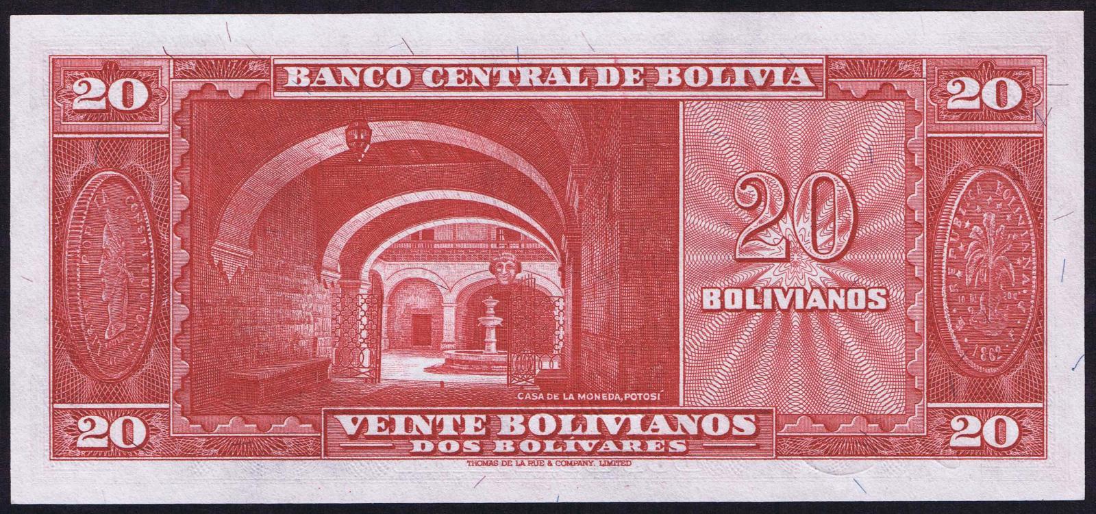 Bolivia pick 161a: 20 Pesos Bolivianos from 1962