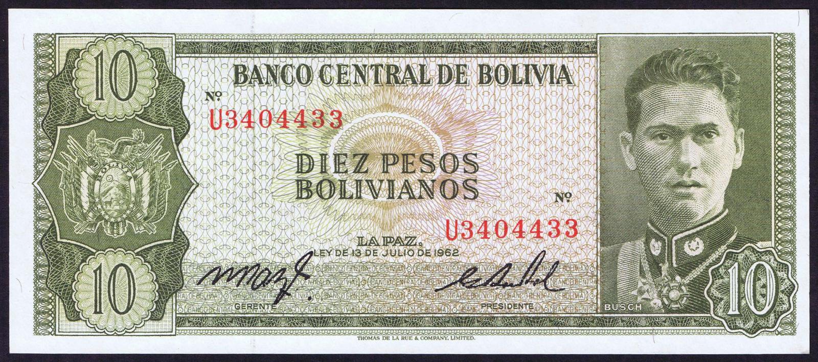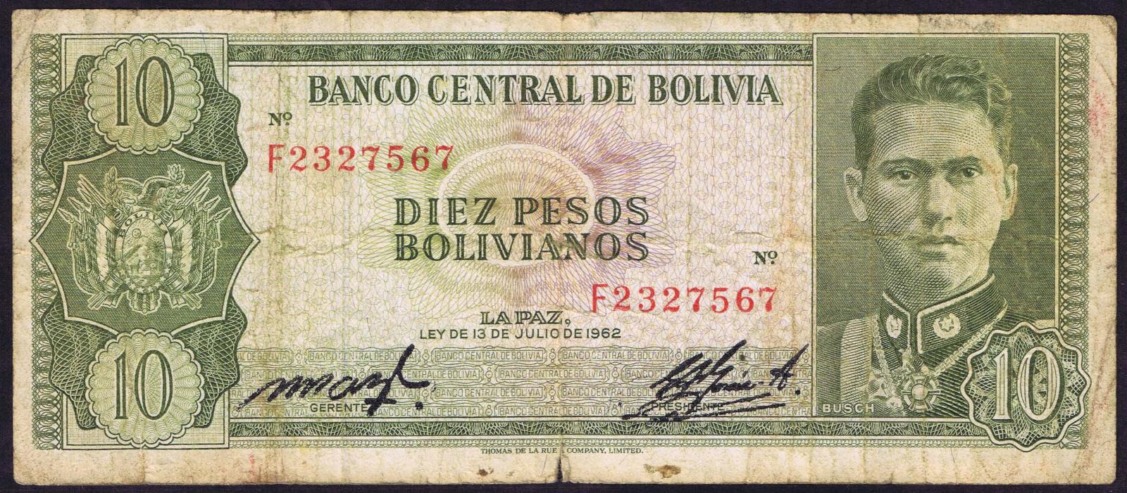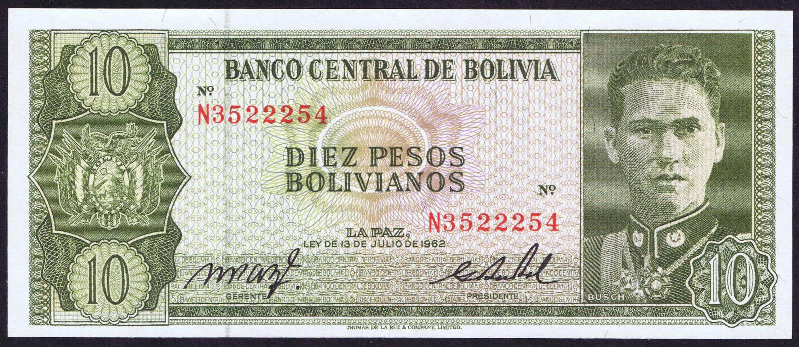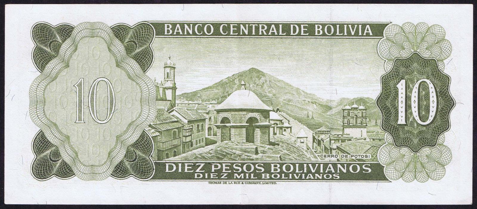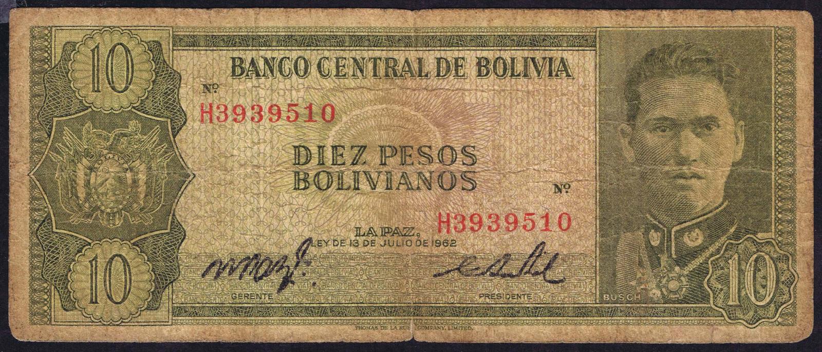 Bolivia pick 154a: 10 Pesos Bolivianos from 1962