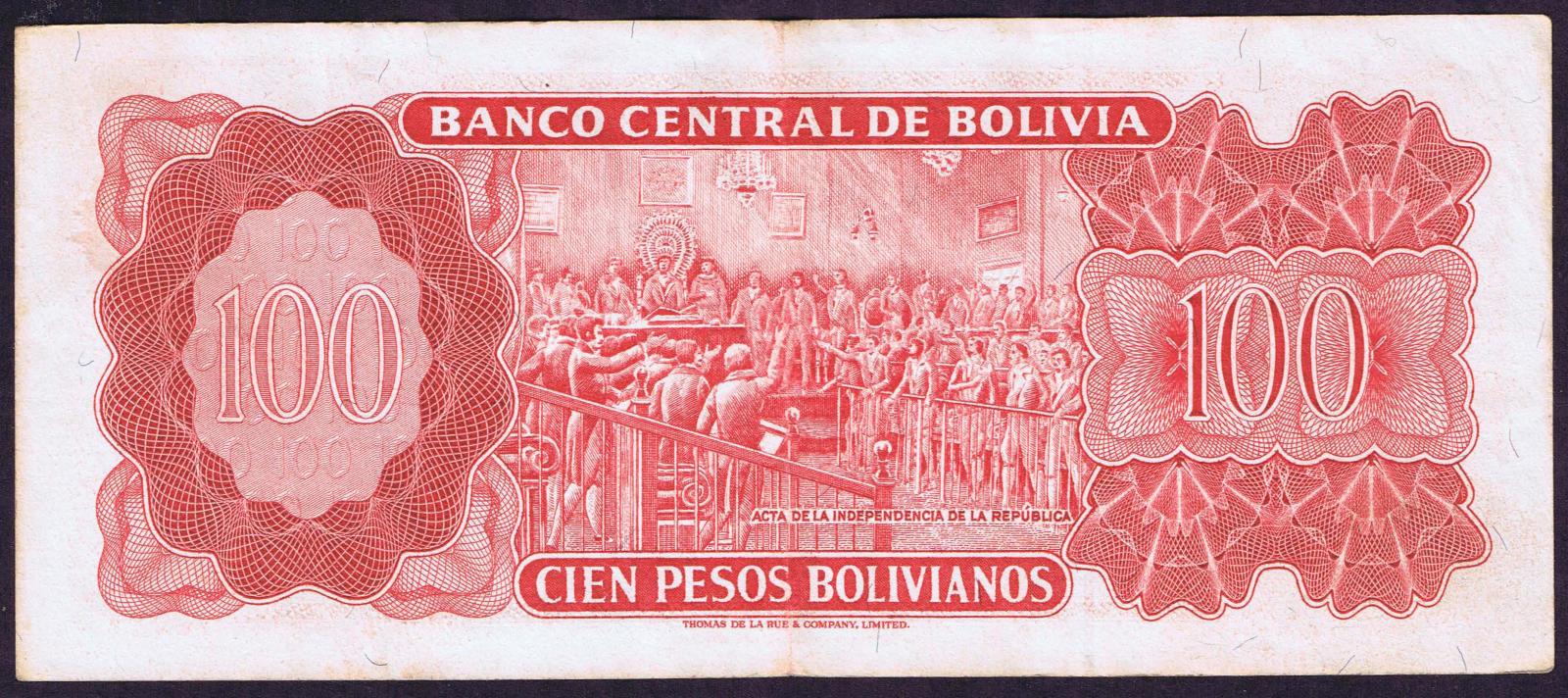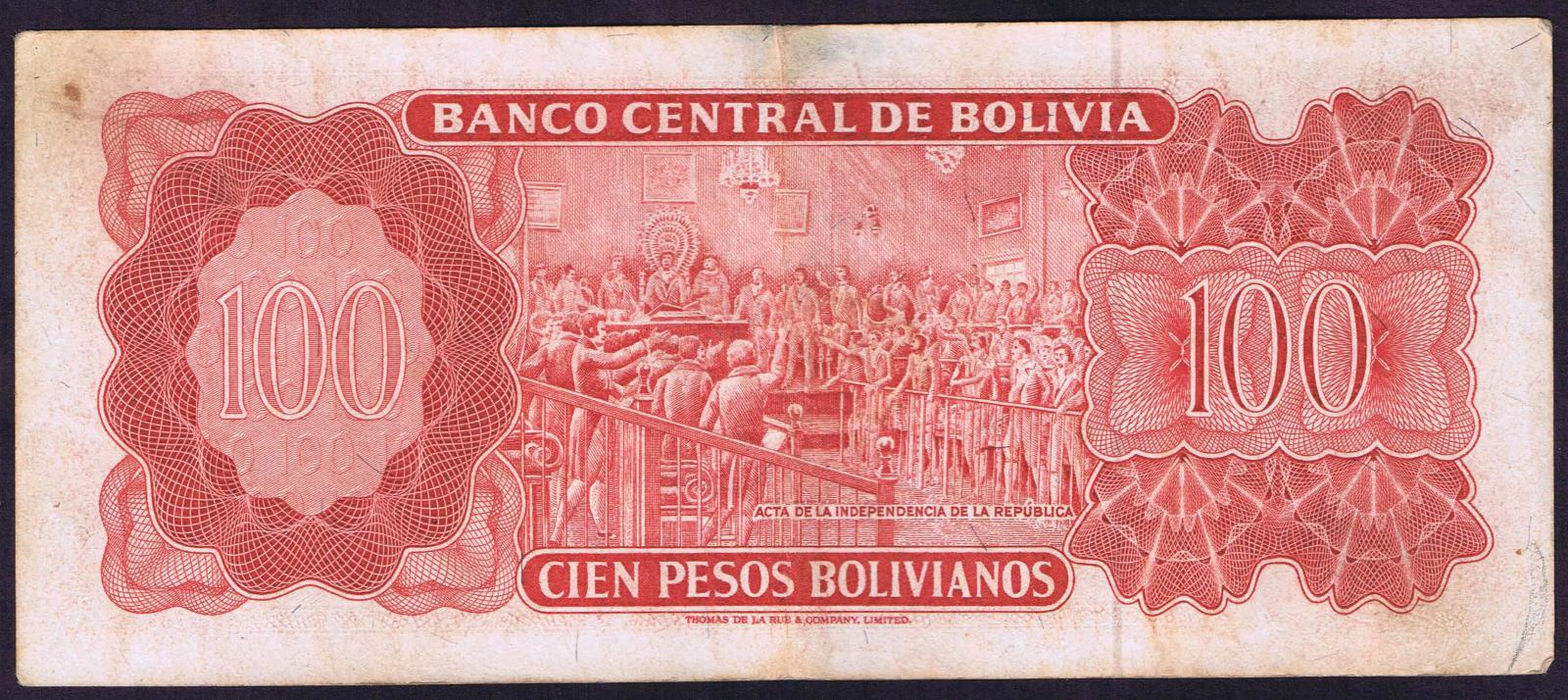 Bolivia pick 164a: 100 Pesos Bolivianos from 1962