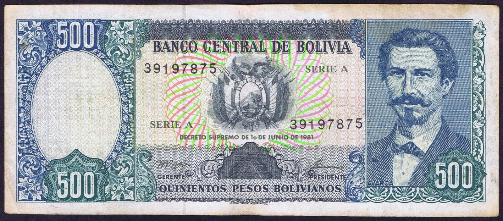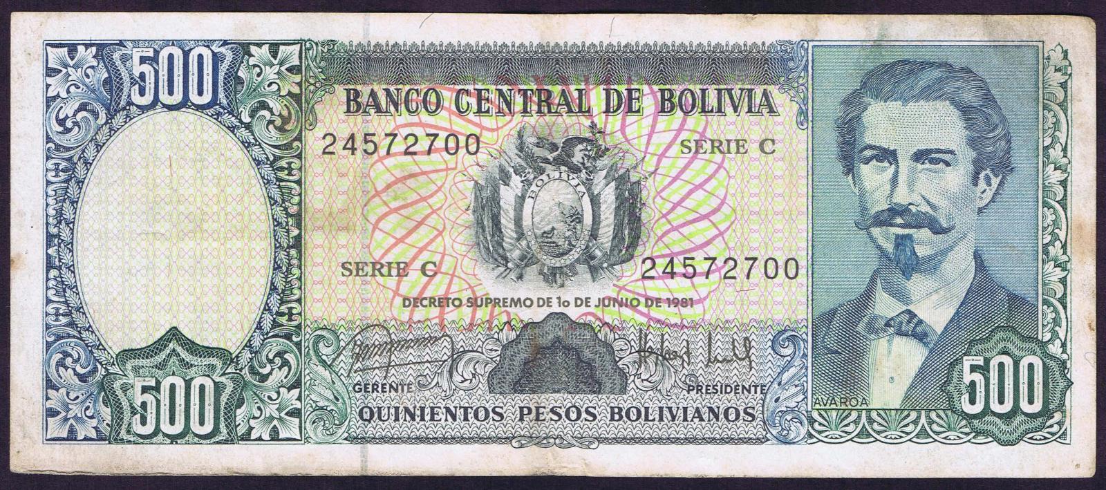 Bolivia pick 166a: 500 Pesos Bolivianos from 1981