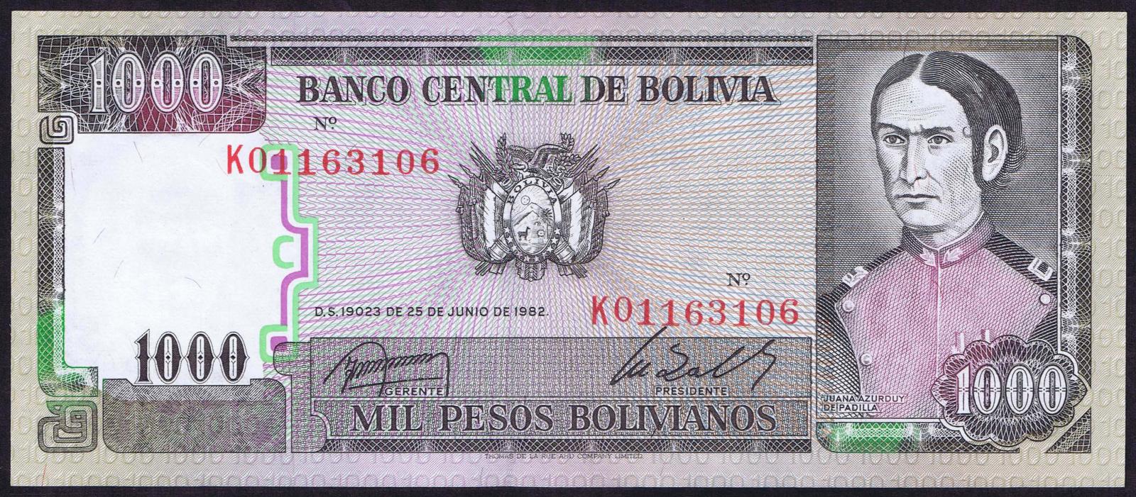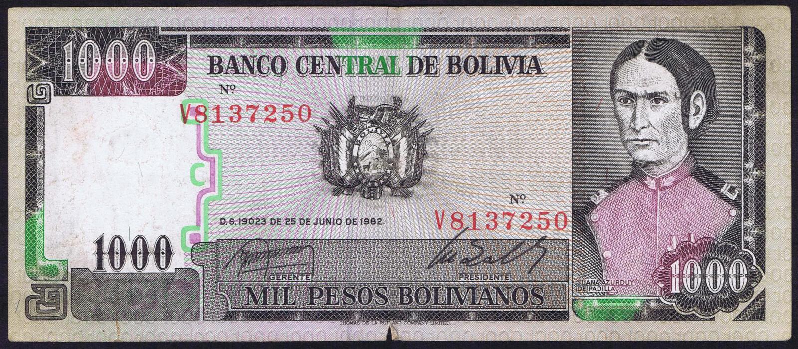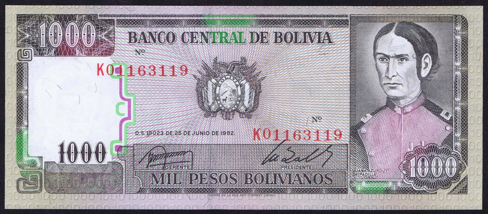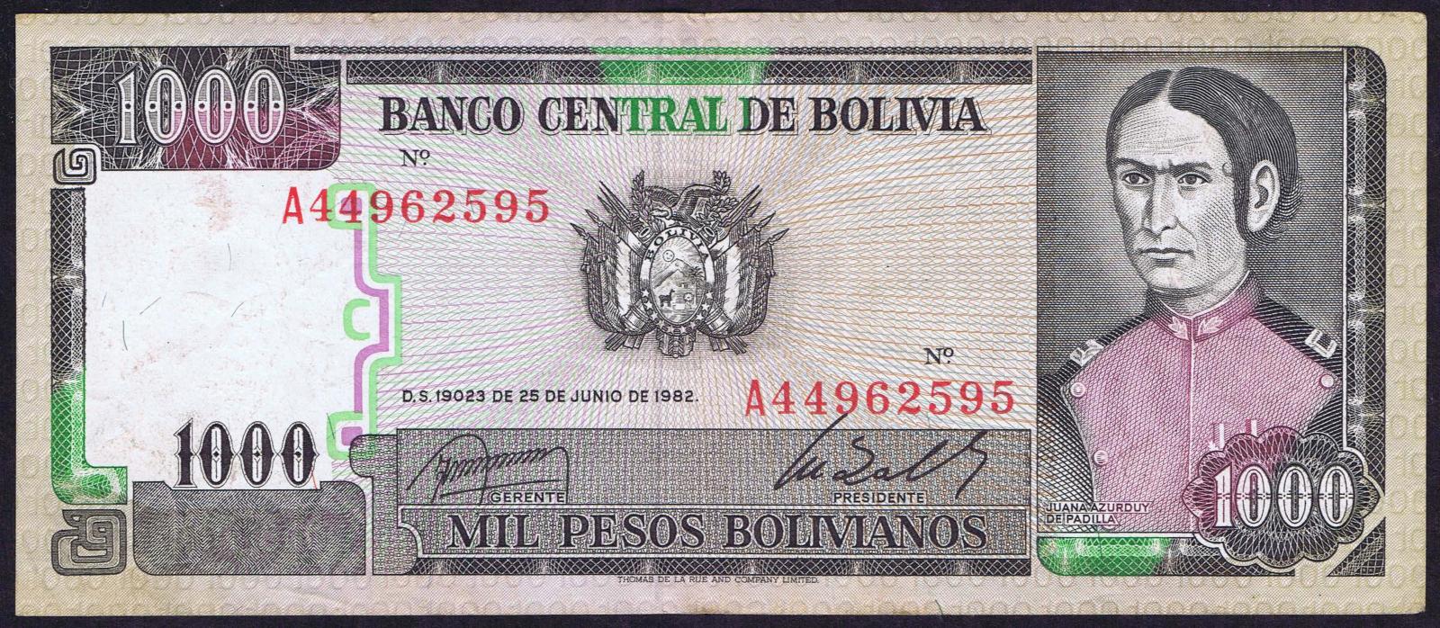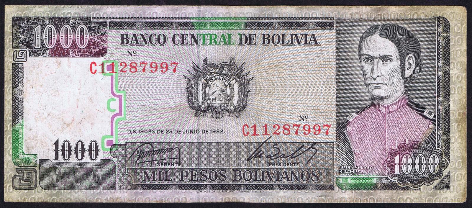 Bolivia pick 167a: 1000 Pesos Bolivianos from 1982