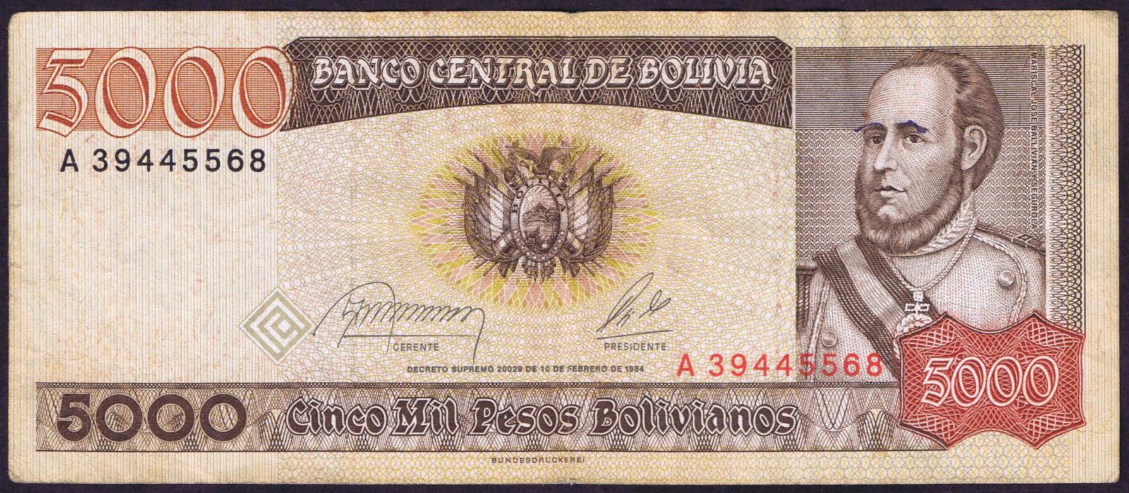 Bolivia pick 168a: 5000 Pesos Bolivianos from 1984