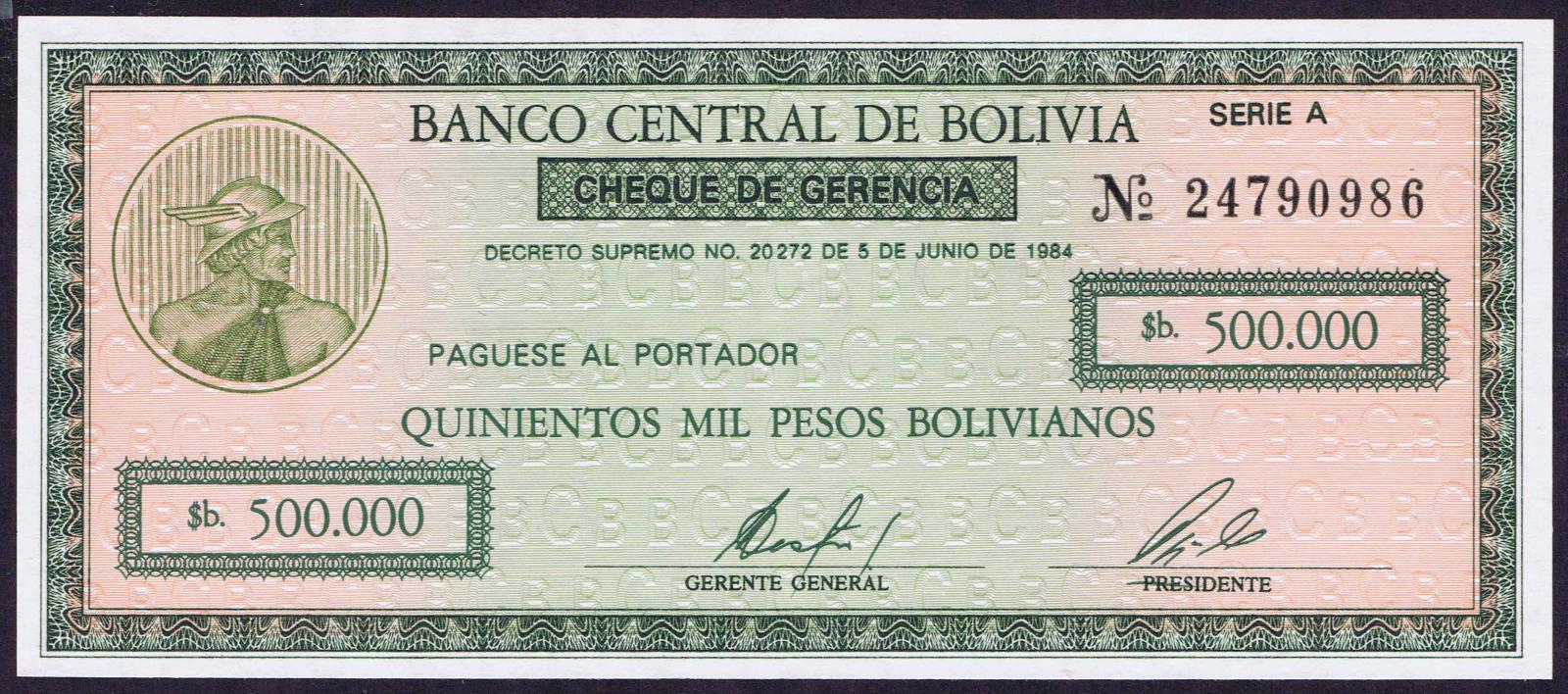 Bolivia pick 189: 500000 Pesos Bolivianos from 1984