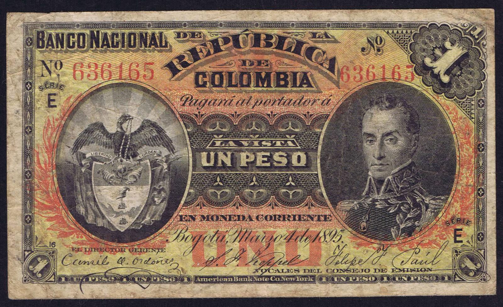 Colombia pick 234a: 1 Peso from 1895