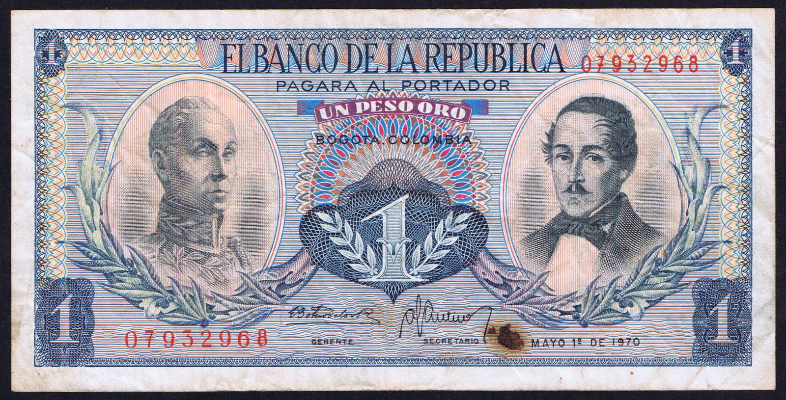 Colombia pick 404e: 1 Peso Oro from 1970