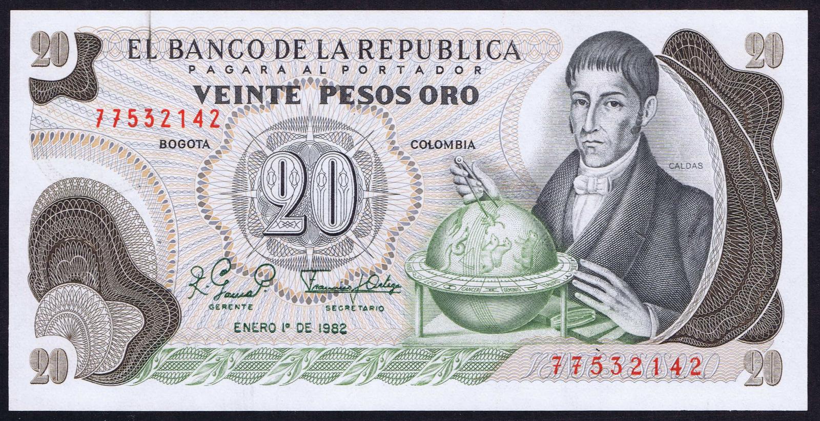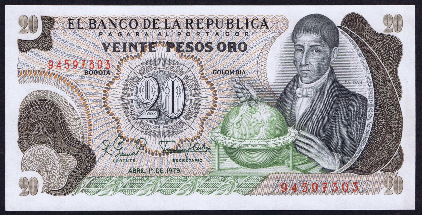 Colombia pick 409d: 20 Pesos Oro from 1979