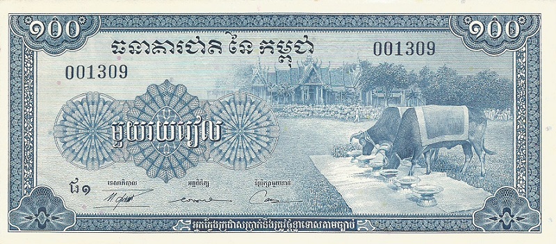 Cambodia pick 13b: 100 Riels from 1956