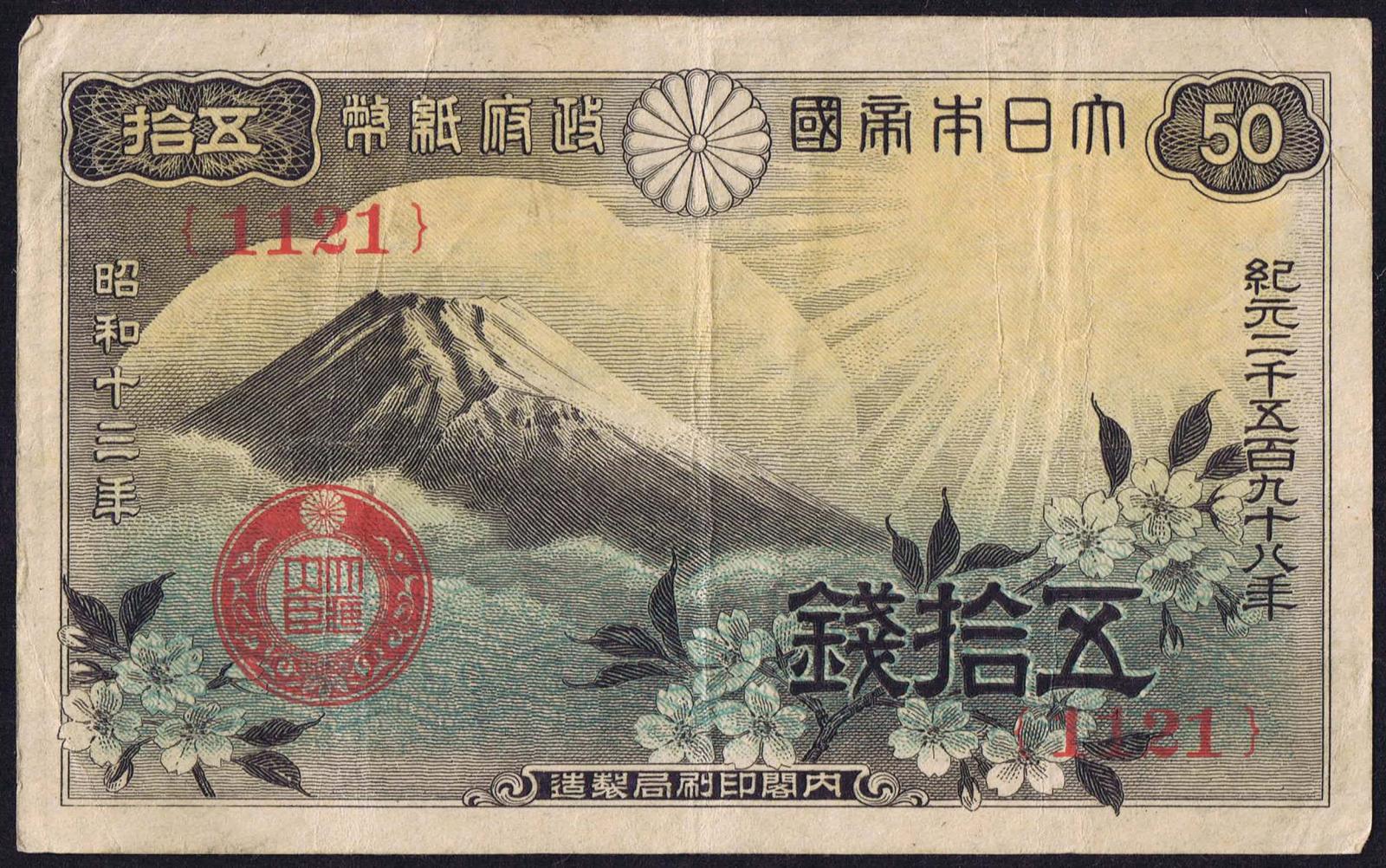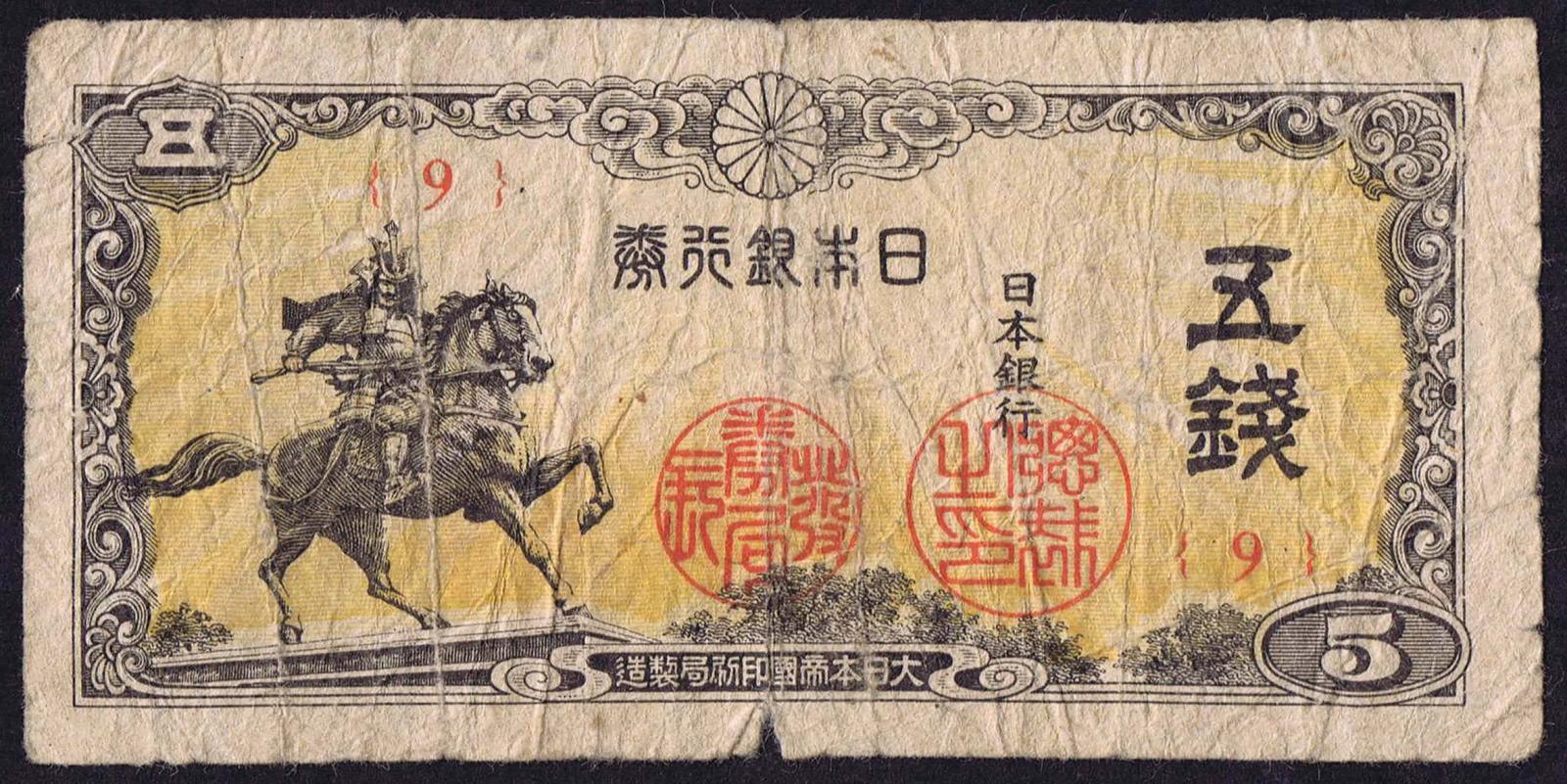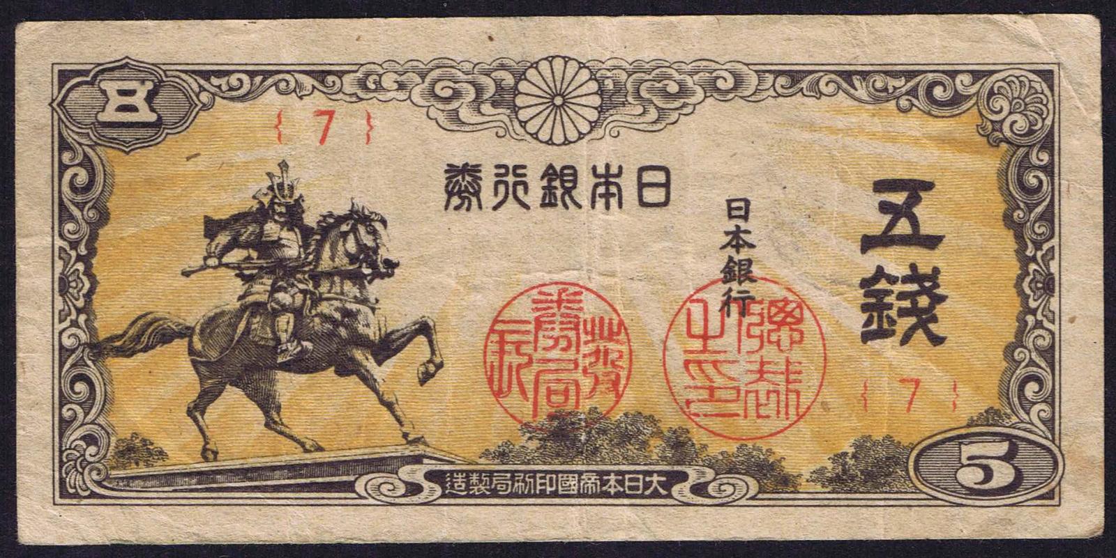 ND (1944). Black on yellow underprint. Equestrian statue at left. Japanese text only.