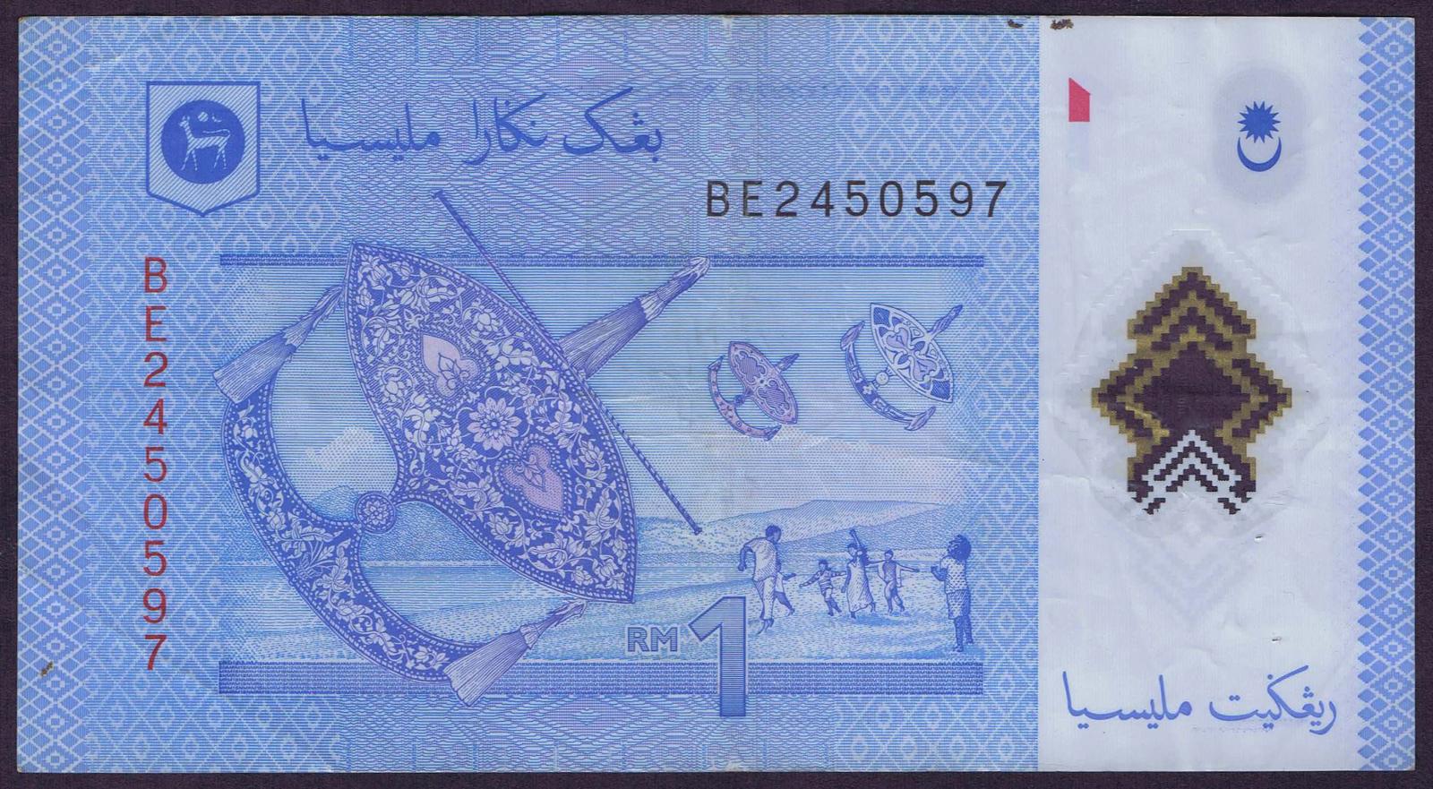 2012. Blue and multicolored. Tuanku Abdul Rahman at right, flower at lower center. Back: Wau bulan, a moon kite. Polymer plastic.