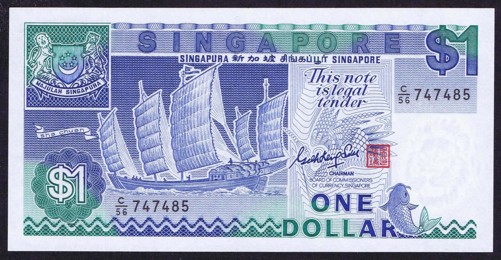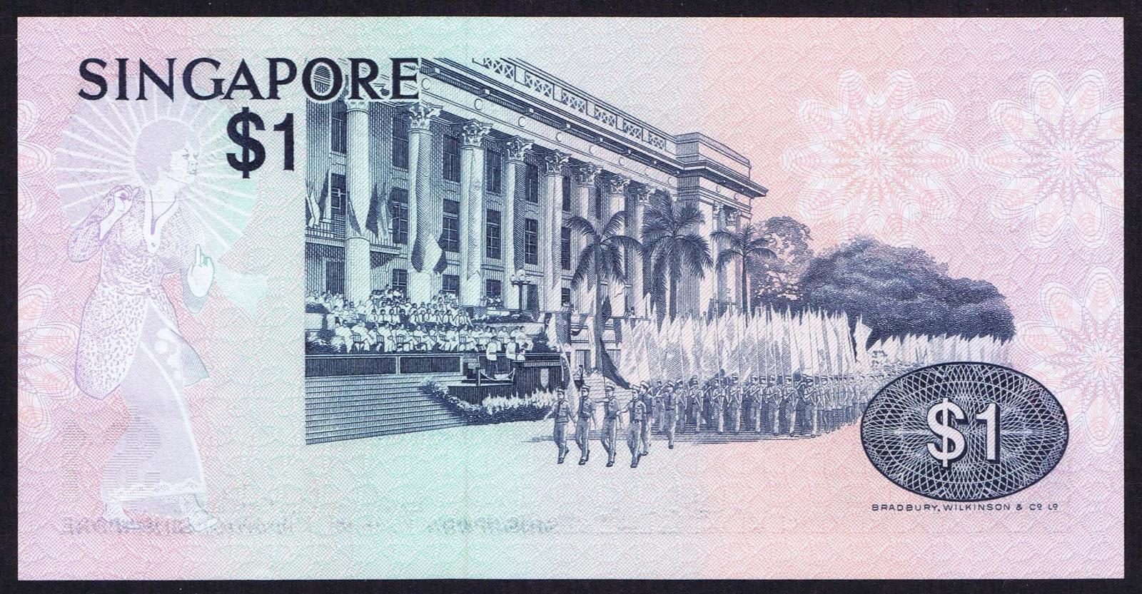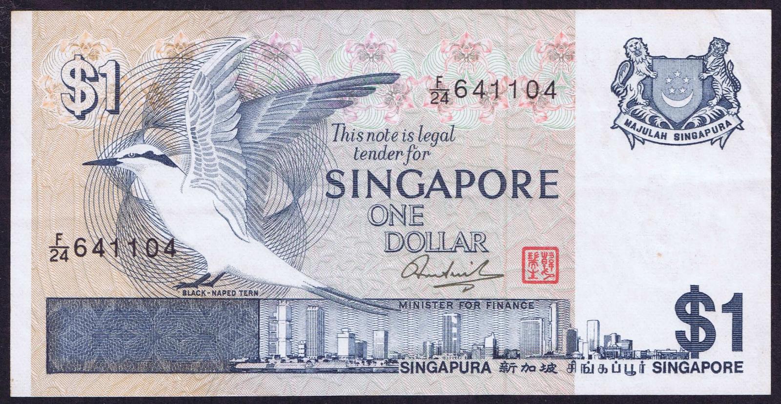 ND (1976). Blue-black on multicolor underprint. Black-naped tern at left, city skyline along bottom, arms at upper right. Back: National Day parade passing large building at center right. Watermark: Lion's head. Printer: BWC.