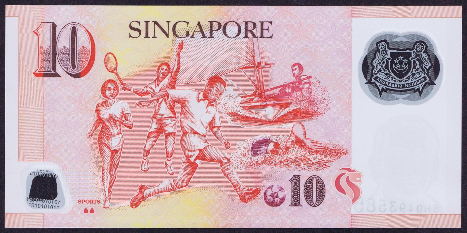 ND (2005). Red, brown and multicolor. President Encik Yusof bin Ishak at right. Back: Sports - swimming, tennis, soccer, sailing, running. Watermark: President Encik Yusof bin Ishak. Polymer plastic. Two solid houses below the word "SPORTS" on lower left back.