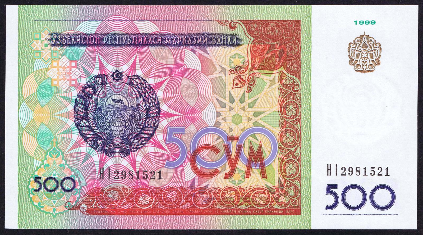 Uzbekistan pick 81a: 500 Sum from 1999