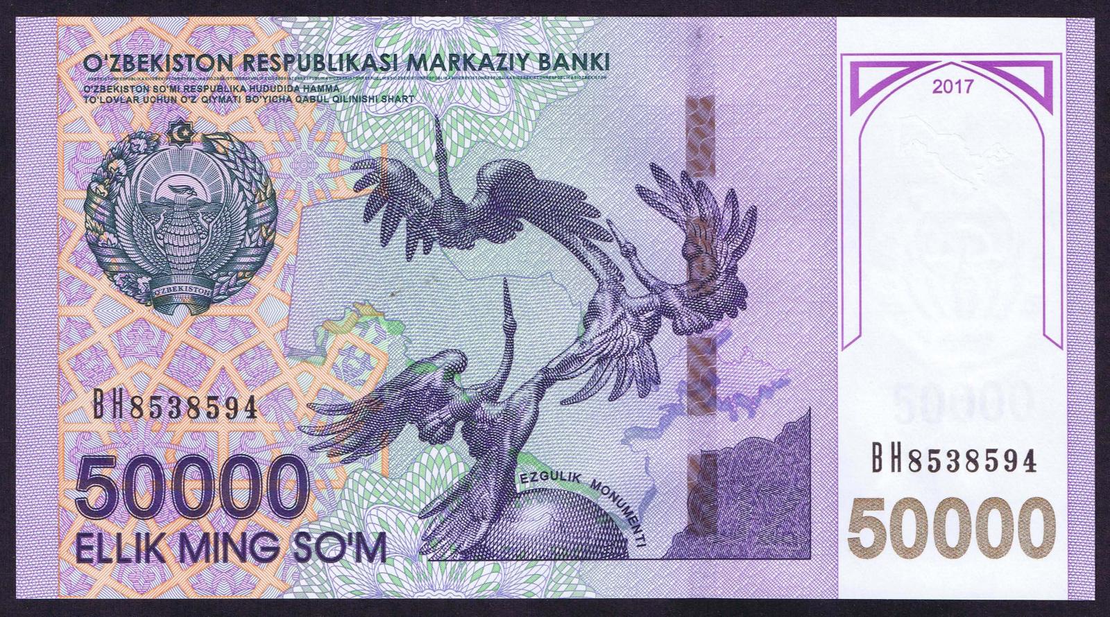 Uzbekistan pick 85: 50000 Sum from 2017