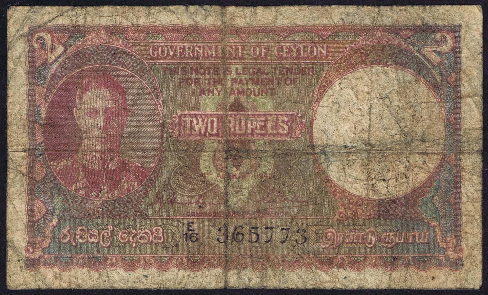 Ceylon pick 31a: 2 Rupees from 1941