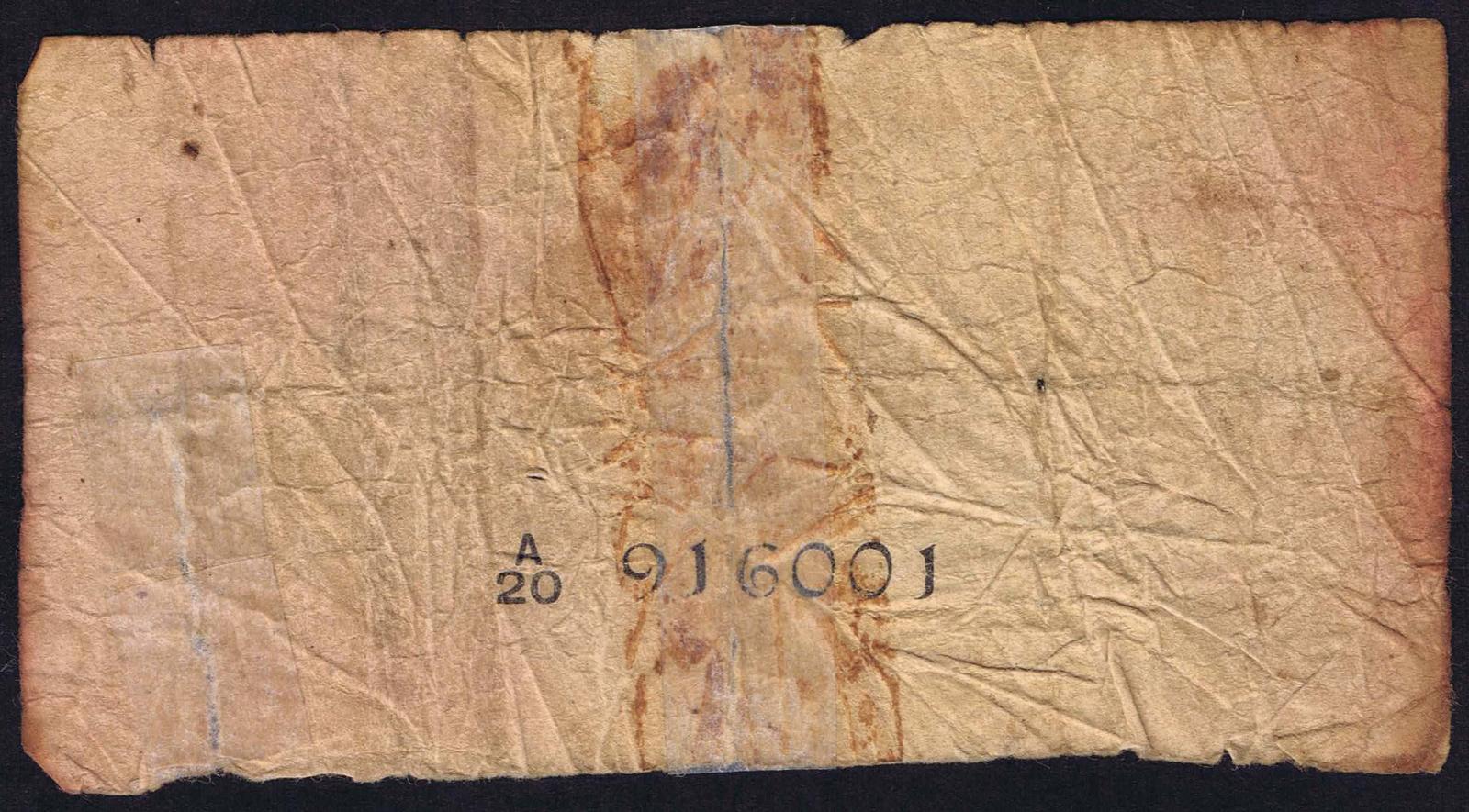 1.2.1941. Violet on brown, blue and green underprint. Portrait King George VI at left, text at upper center begins PROMISES TO PAY... Title on face begins THE GOVERNMENT... Perforated or straight edge at left. Back: Sigiriya Rock.Watermark: Chinze. Printer: Indian.