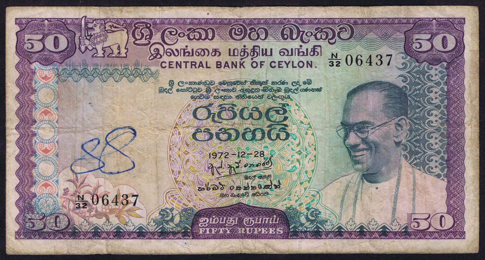 Ceylon pick 79a: 50 Rupees from 1972