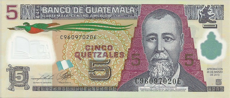 Guatemala pick 122d: 5 Quetzales from 2013
