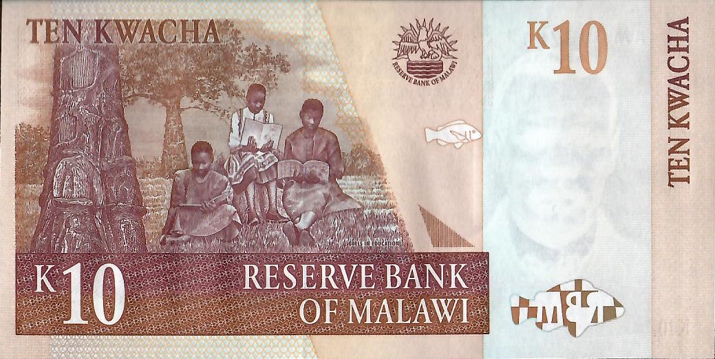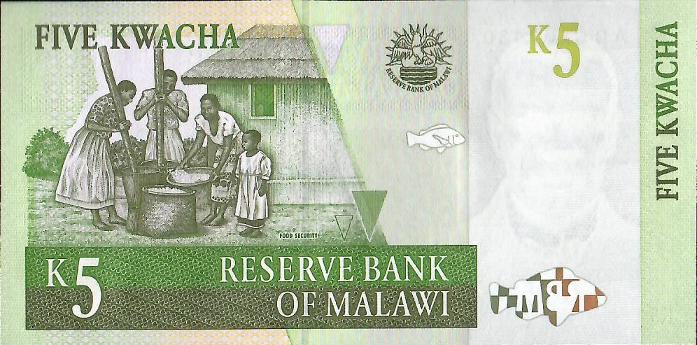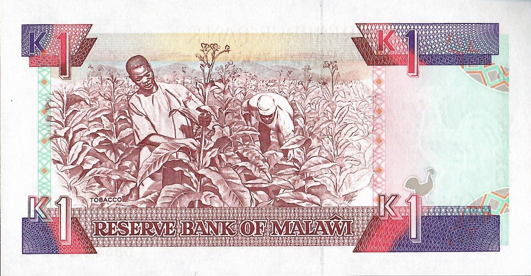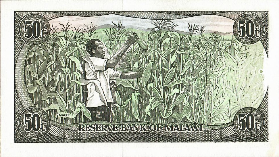 1.3.1986. Black and dark brown on multicolored underprint. Portrait of Dr. Hastings Kamuzu Banda as President at right. Picking corn on back. Watermark: rooster.
