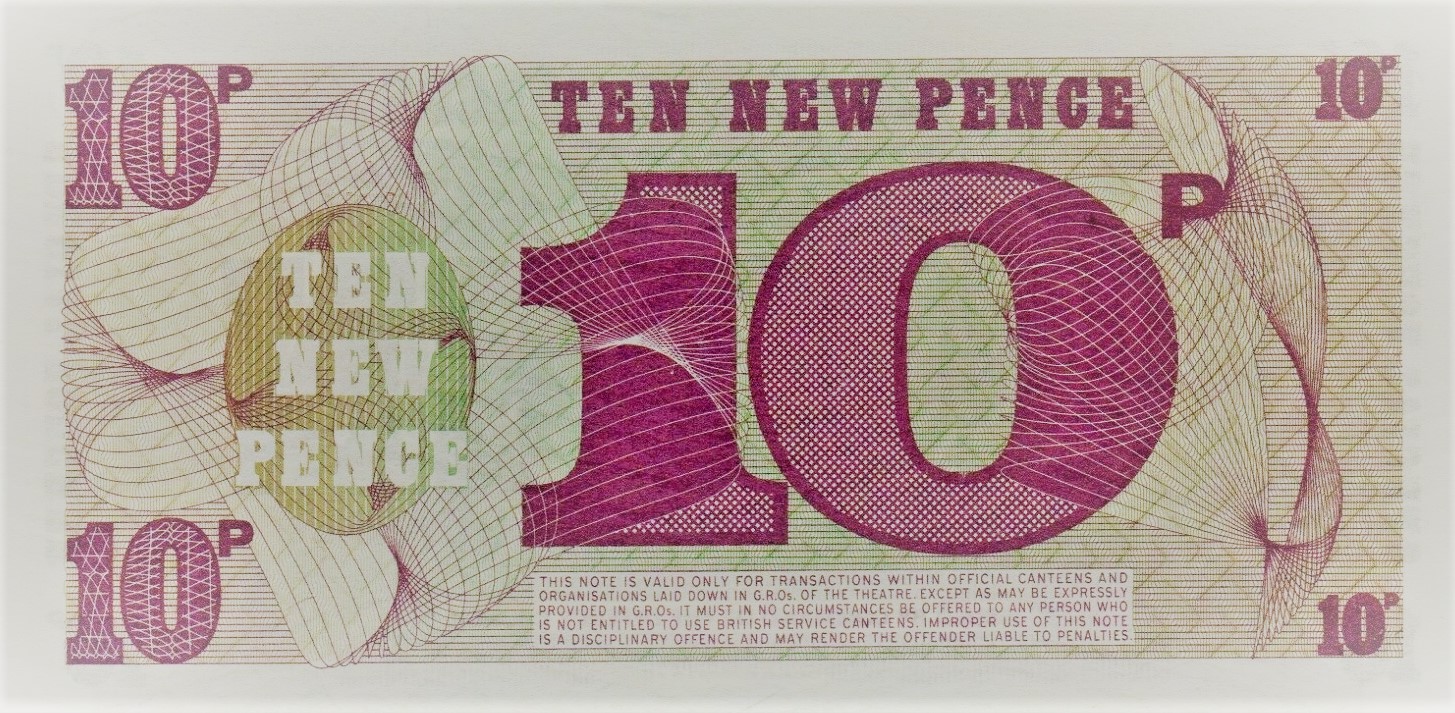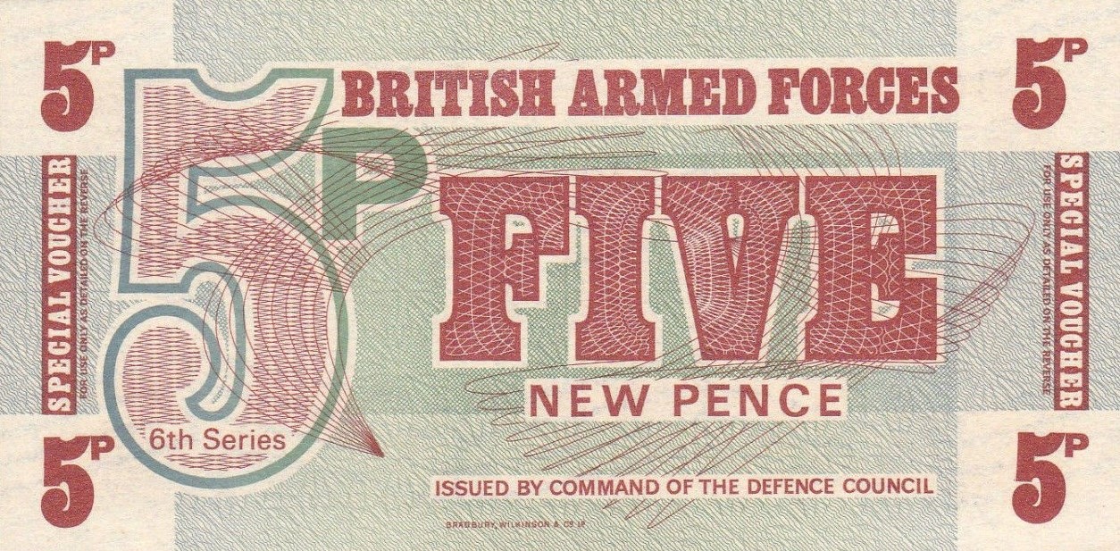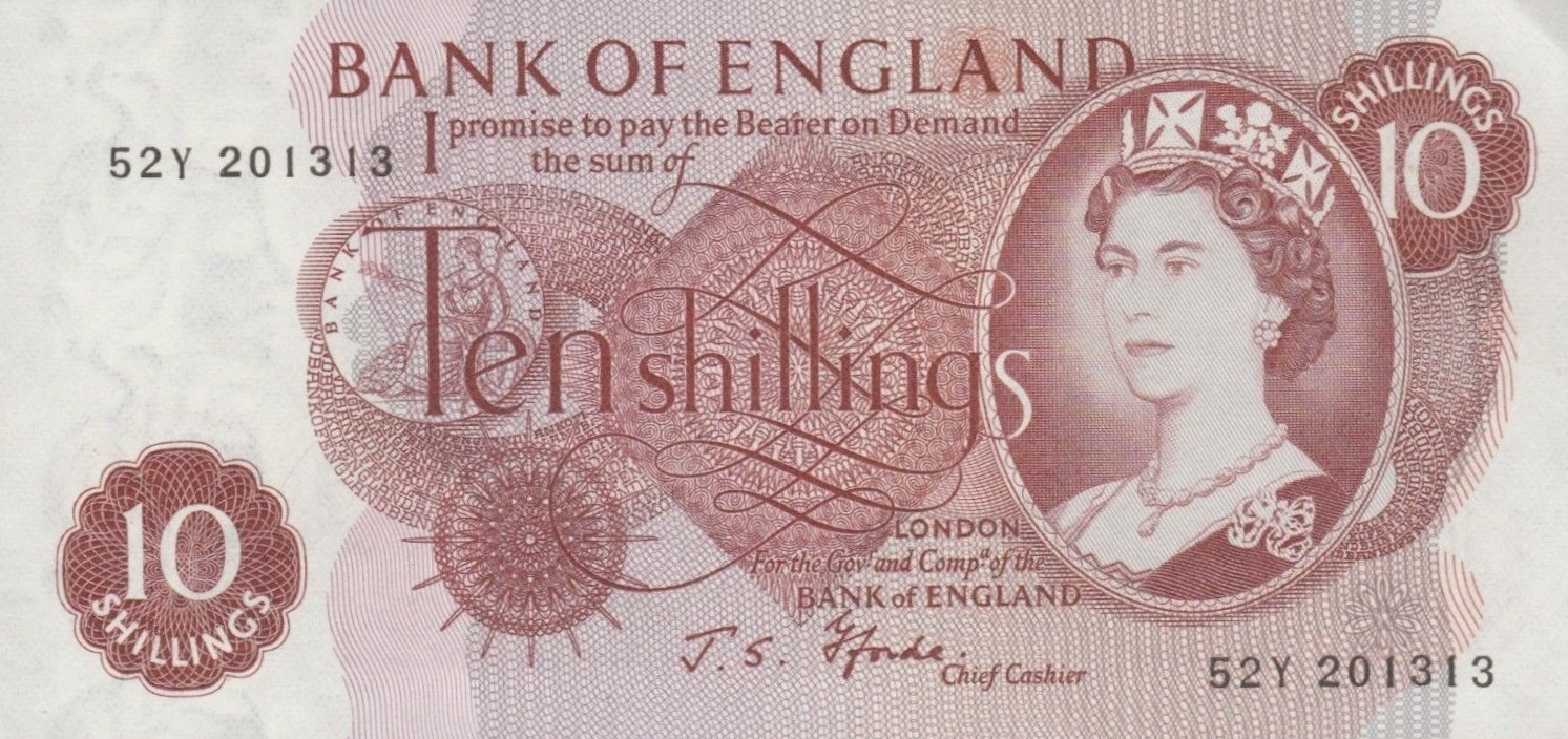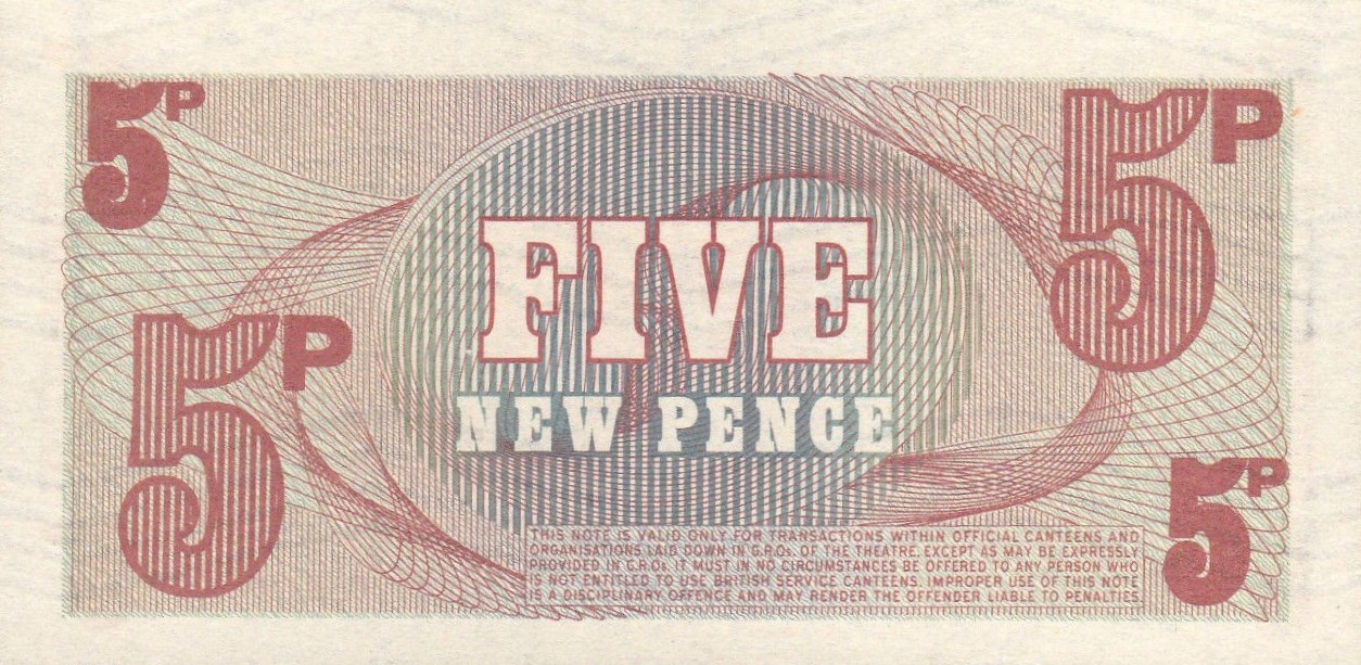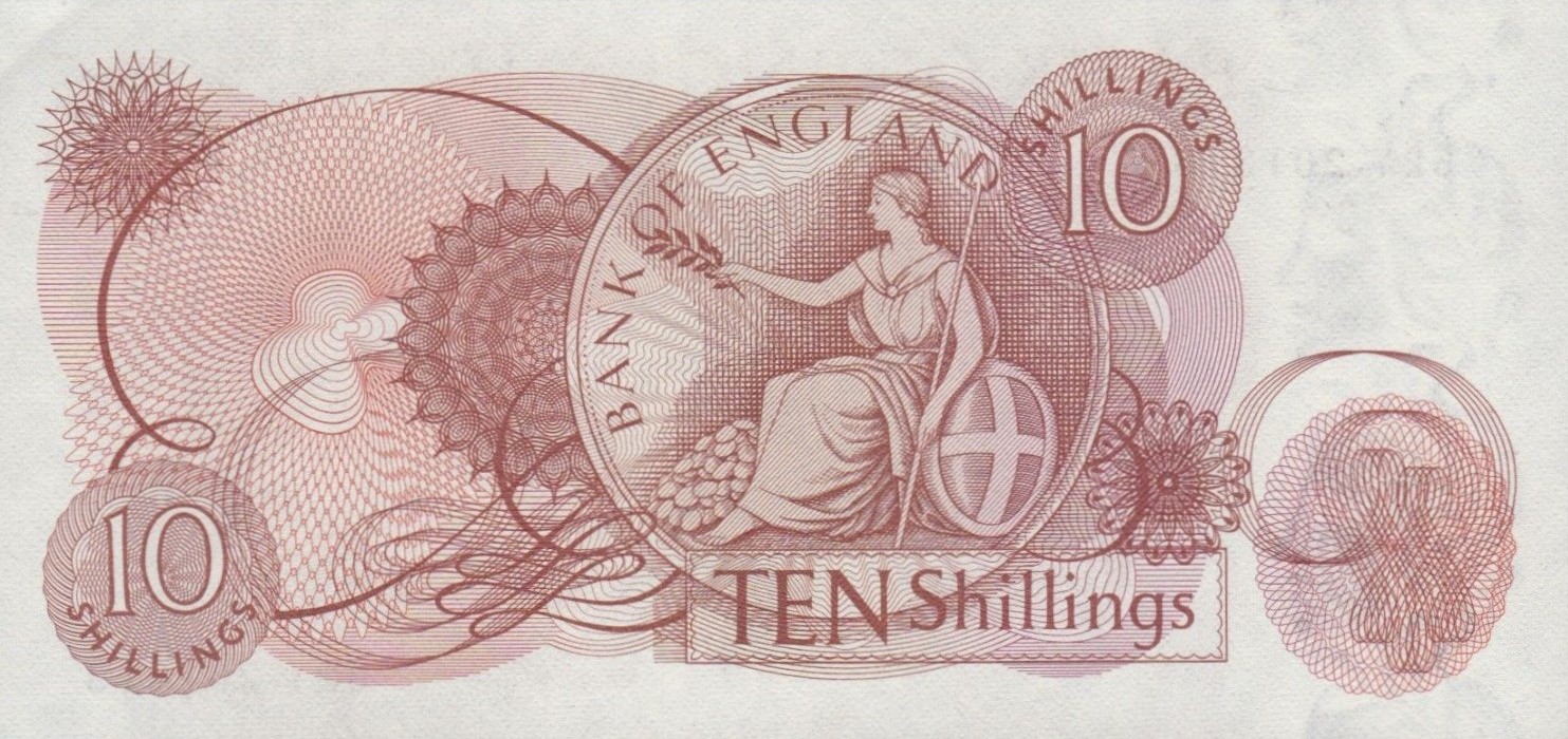 ND(1966-1970). Brown on multicolored underprint. Portrait of Queen Elizabeth II at right. Britannia seated with a shield in circle at center right on back. Watermark: laureate heads in continuous vertical row at left.