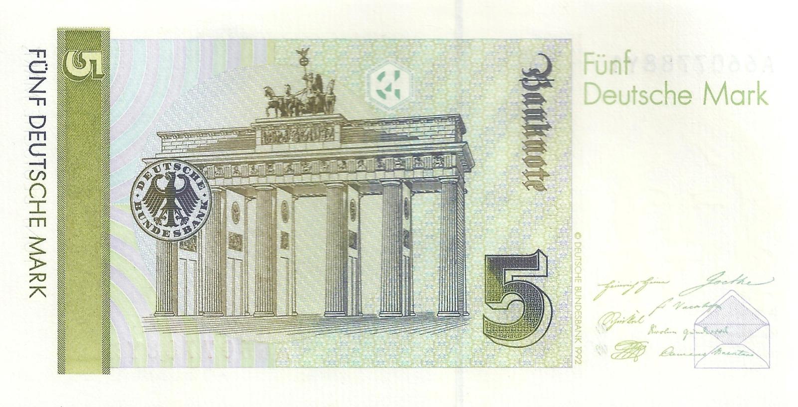 German Federal Republic pick 37a: 5 Deutsche Mark from 1991