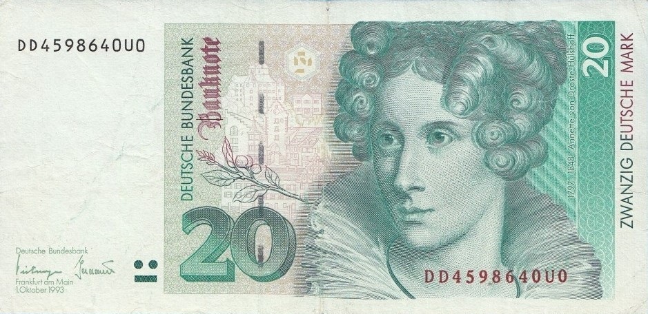 German Federal Republic pick 39b: 20 Deutsche Mark from 1993