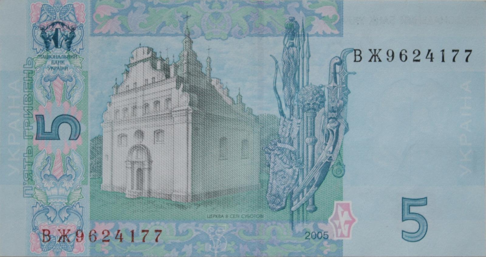 2005. Blue on multicolor underprint. Bohdan Khmelnytsky at center. Back: Ilynska Church in Subotiv. Watermark: Bohdan Khmelnytsky.