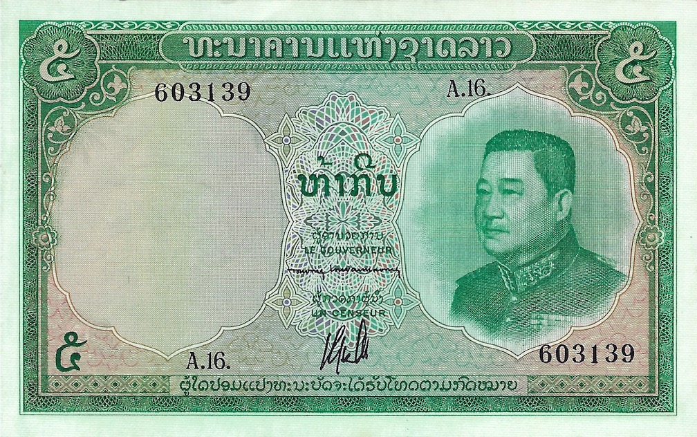 Laos pick 9b: 5 Kip from 1962