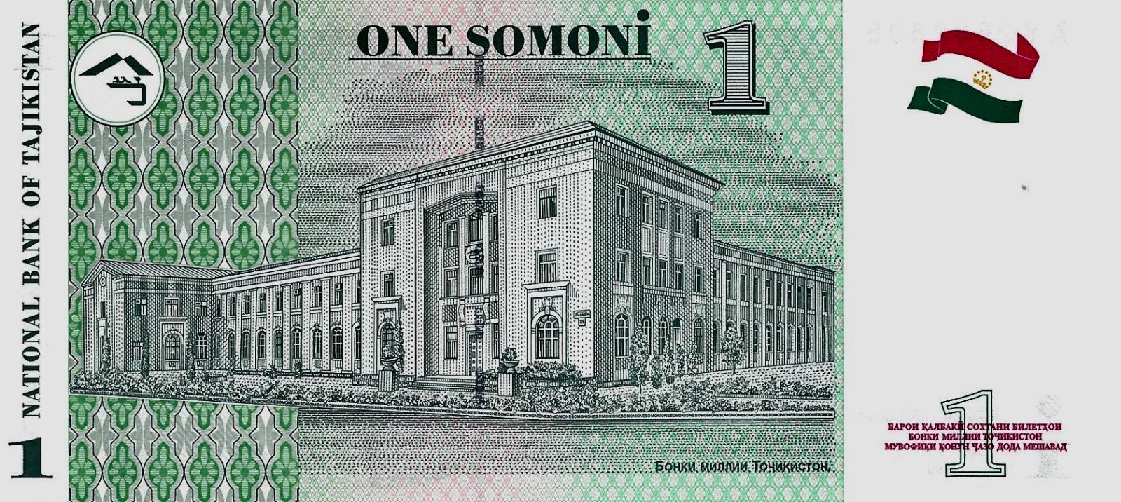 1994. Blue-black and brown on multicolor underprint. Arms at left. Back: Majlisi Olii (Parliament). Watermark: Multiple stars. Printer: Goznak, Moscow (without imprint).