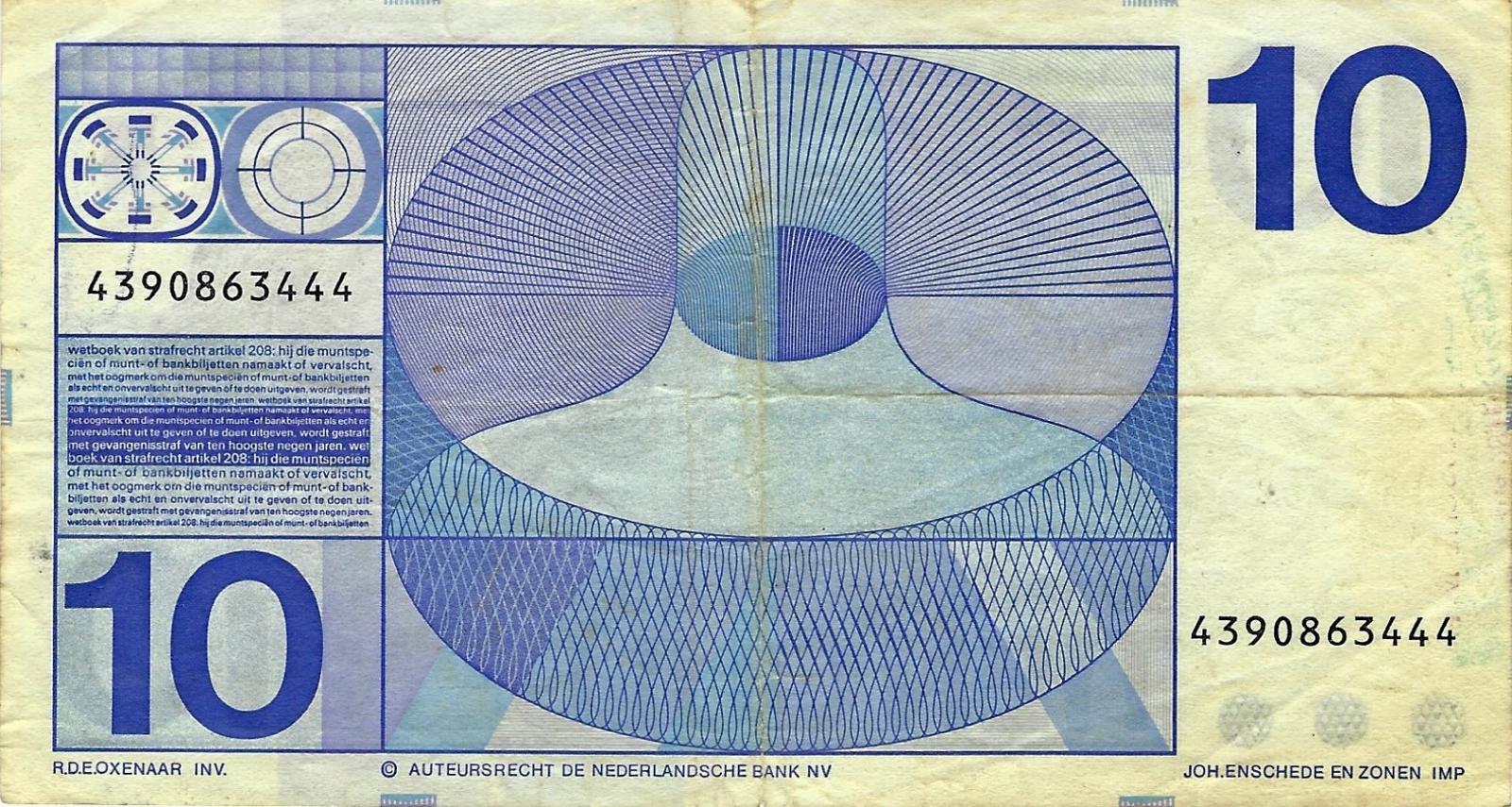 25.4.1968. Dark blue on violet and multicolor underprint. Stylized self-portrait of Frans Hals at right. Back: Modern design. Watermark: Cornucopia. Plain "bullseye" at upper left on back.