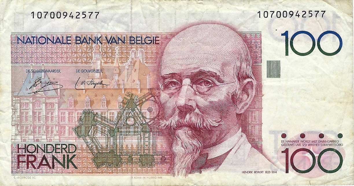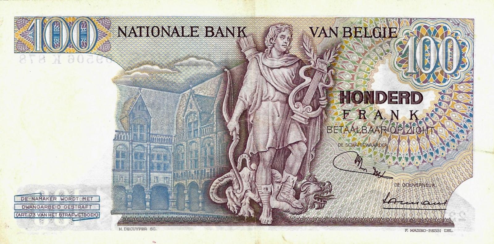 ND (1978-1981). Maroon, blue, and olive-green on multicolored underprint. Hendrik Beyaert at center right. Architectural view and plan at left. Geometric design on back.