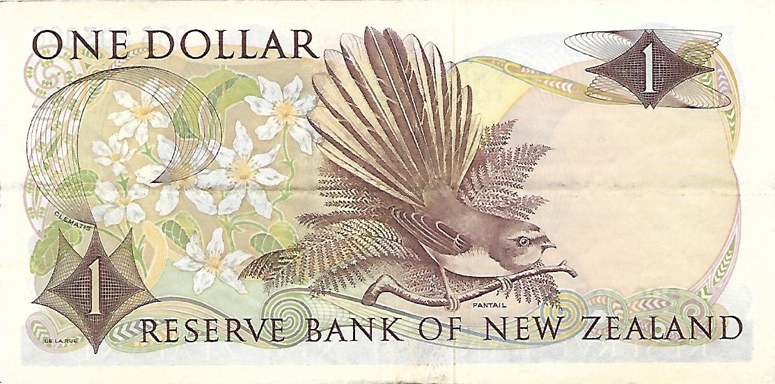ND (1968-1975). Brown on multicolor underprint. Queen Elizabeth II at right. Back: Pied fantail at center and plants. Watermark: Capt. James Cook. Printer: TDLR. Replacement notes: Special serial number prefix and * suffix.