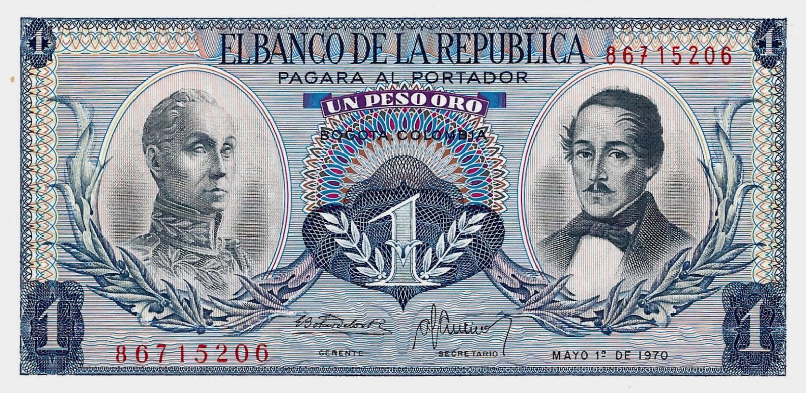 Colombia pick 404e: 1 Peso Oro from 1970