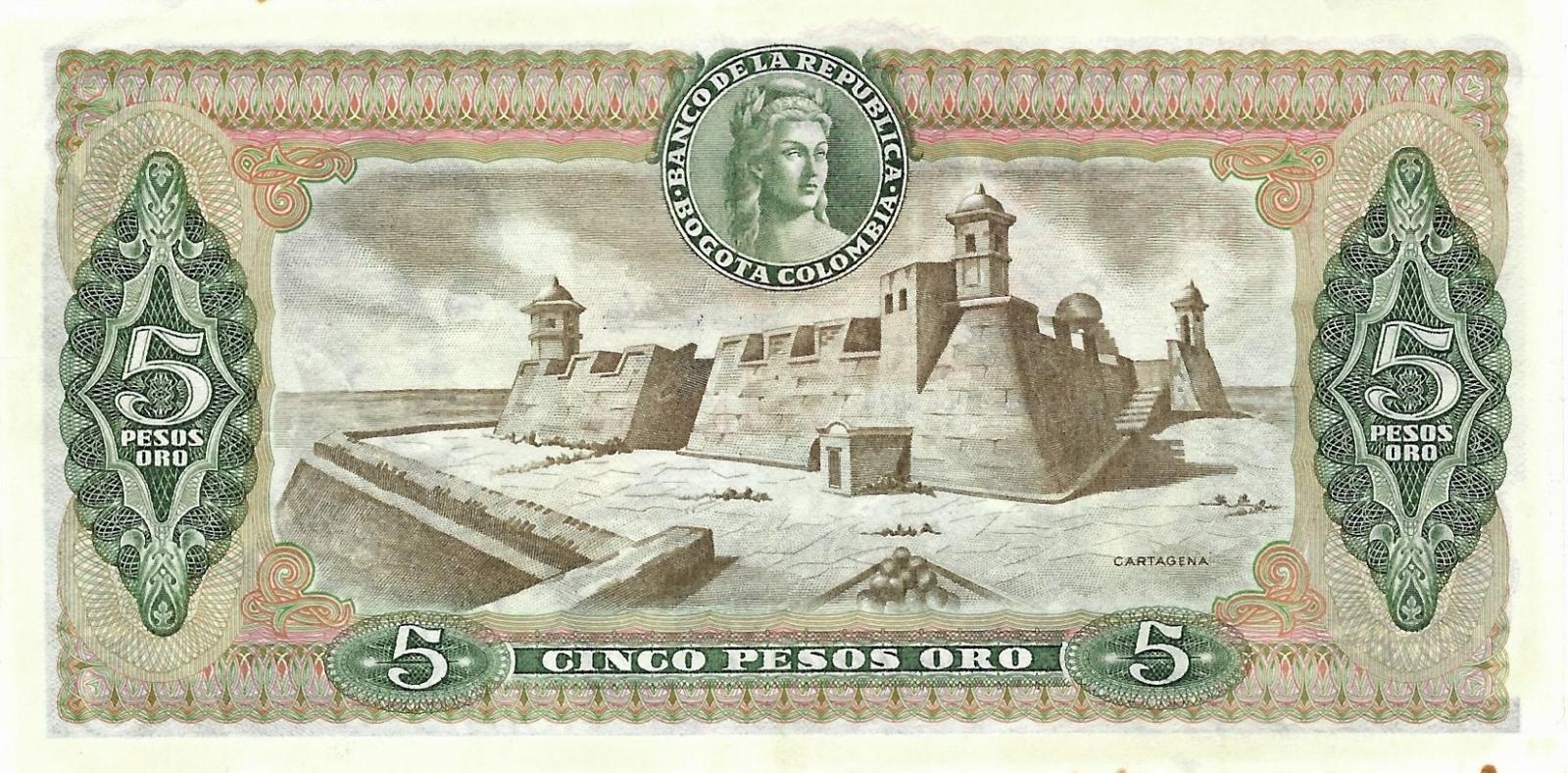 Colombia pick 406f: 5 Pesos Oro from 1978