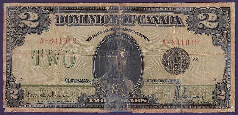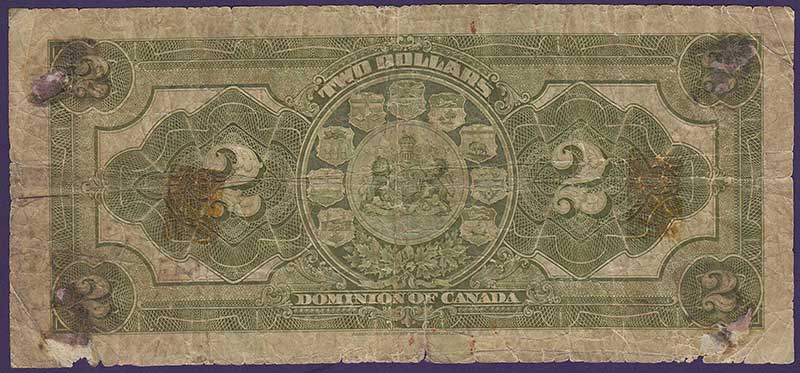 Canada pick 34a: 2 Dollars from 1923