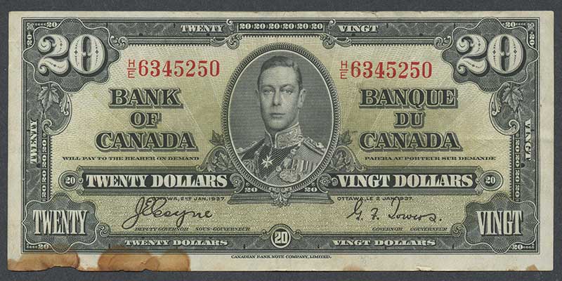 Canada pick 62b: 20 Dollars from 1937