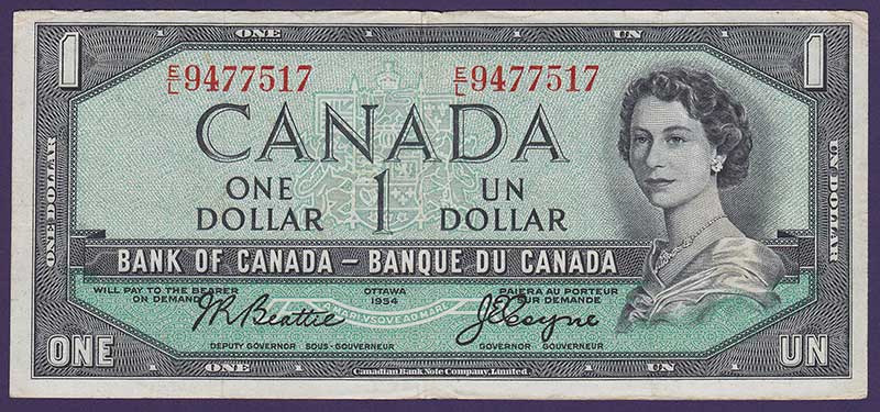 Canada pick 66a: 1 Dollar from 1954
