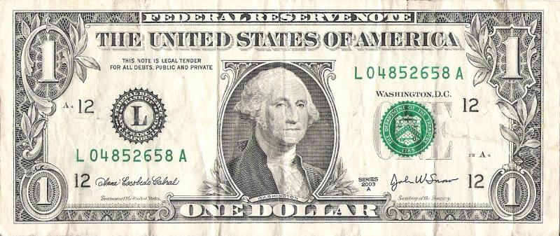 2003A. (A-L). George Washington at center. Back: Great Seal flanking ONE.