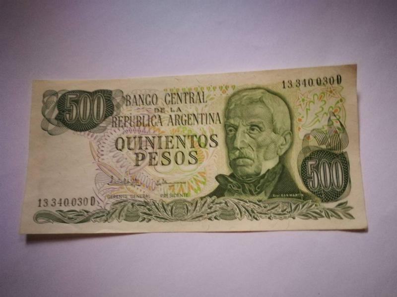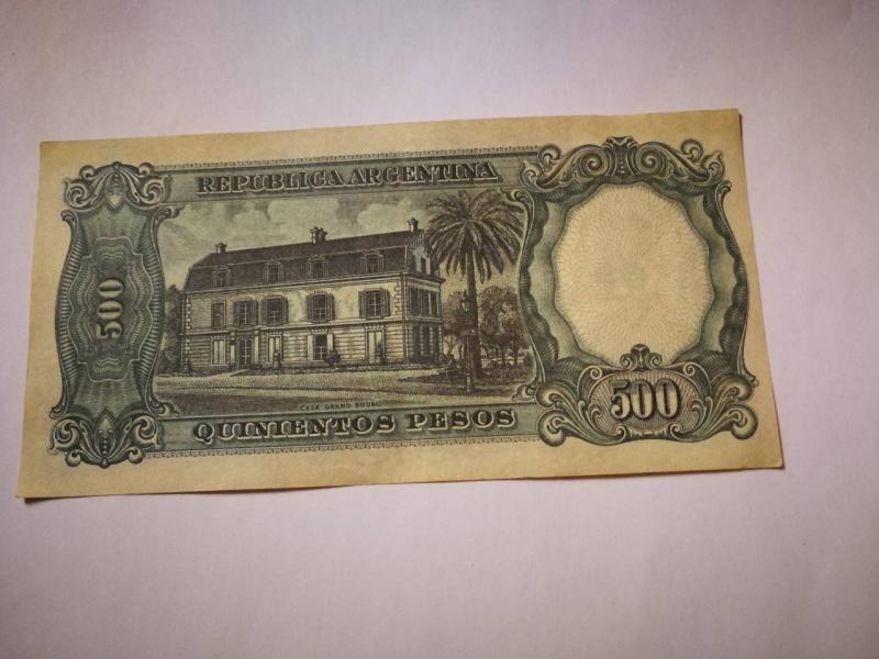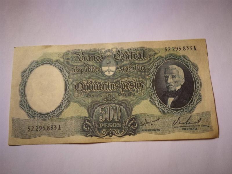1988-1990. Pale olive green on multicolored underprint. N.Avellaneda at center. Dark olive green guilloche by 500. Back pale olive-green and multicolored; lithographed without black. Watermark: multiple sunbursts. Series A (1990). Signature titles GERENTE GENERAL and PRESIDENTE.