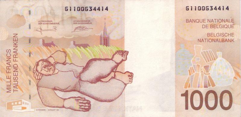 ND (1997). Dark brown on multicolored underprint. Constant Permeke at left and as watermark, sailboat at center. Sleeping Farmer painting at left, on back.