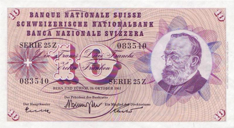 26.10.1961. Purple on red-brown underprint. Gottfried Keller at right. Back: Carnation flower at left center. Printer: OFZ.