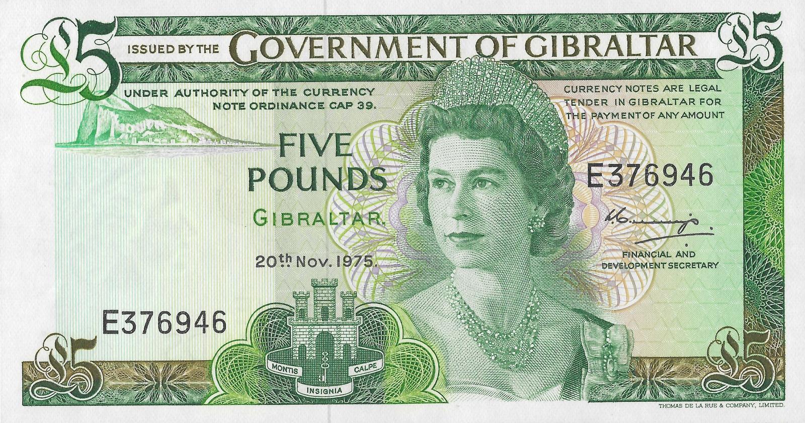 Gibraltar pick 21a: 5 Pounds from 1975