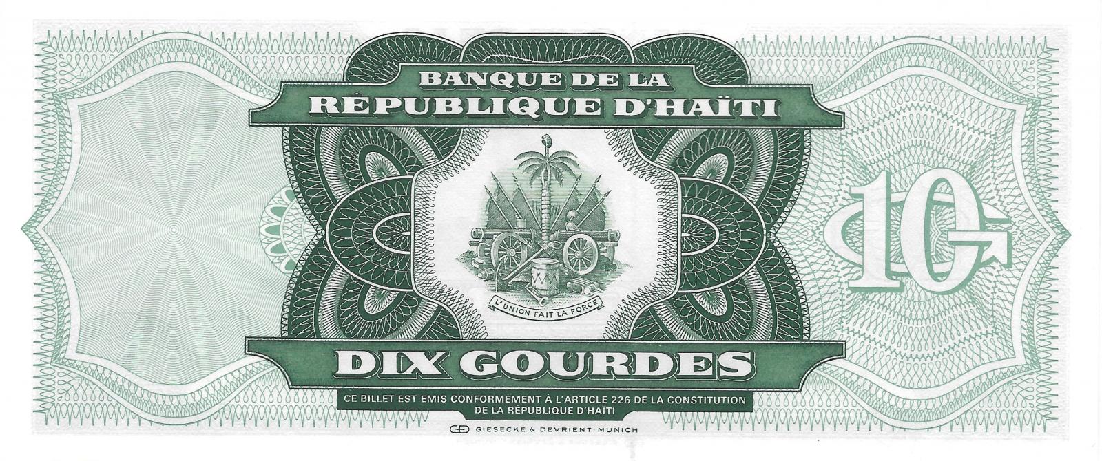 Haiti pick 256a: 10 Gourdes from 1991