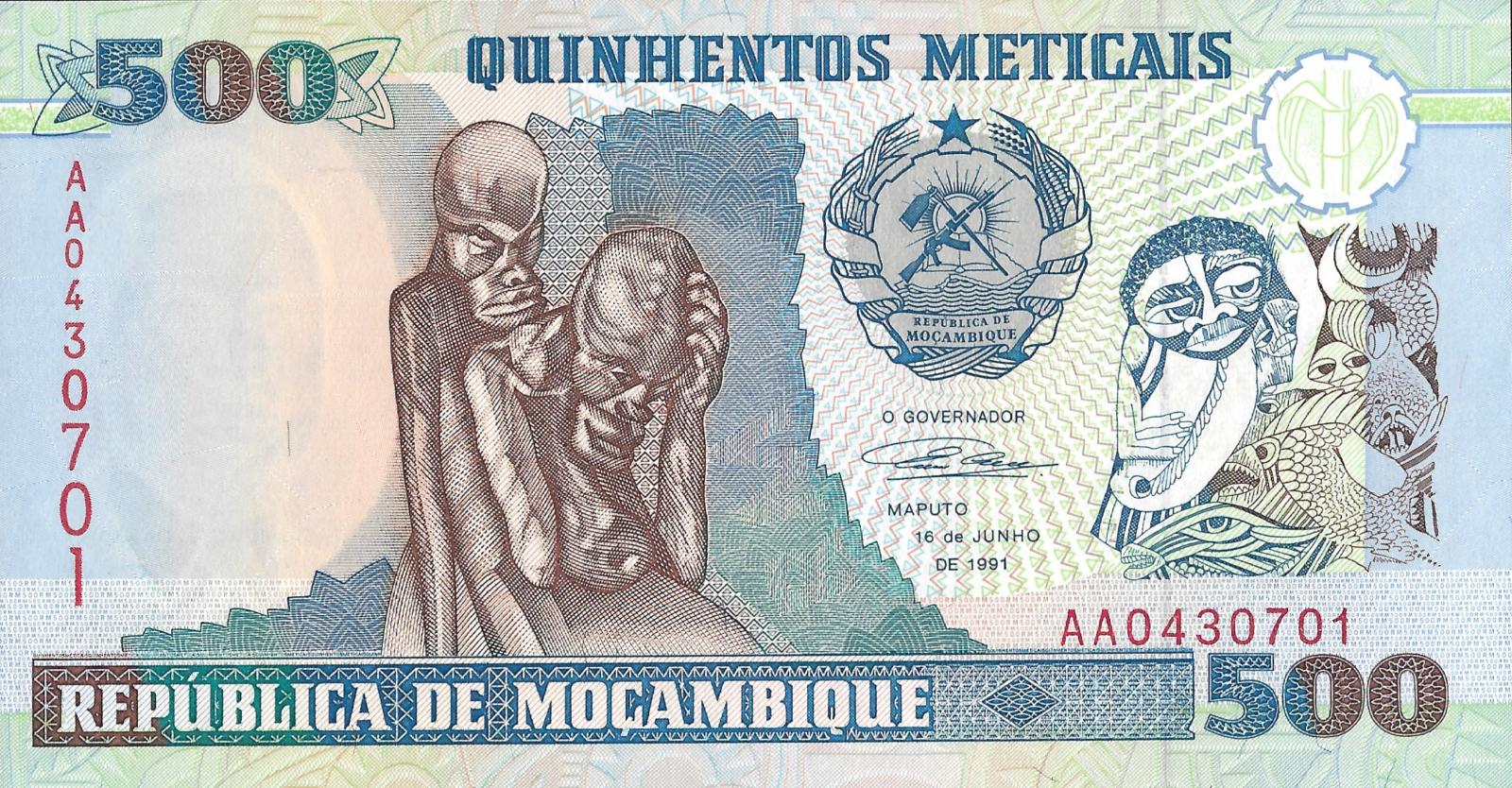 Mozambique pick 134: 500 Meticas from 1991
