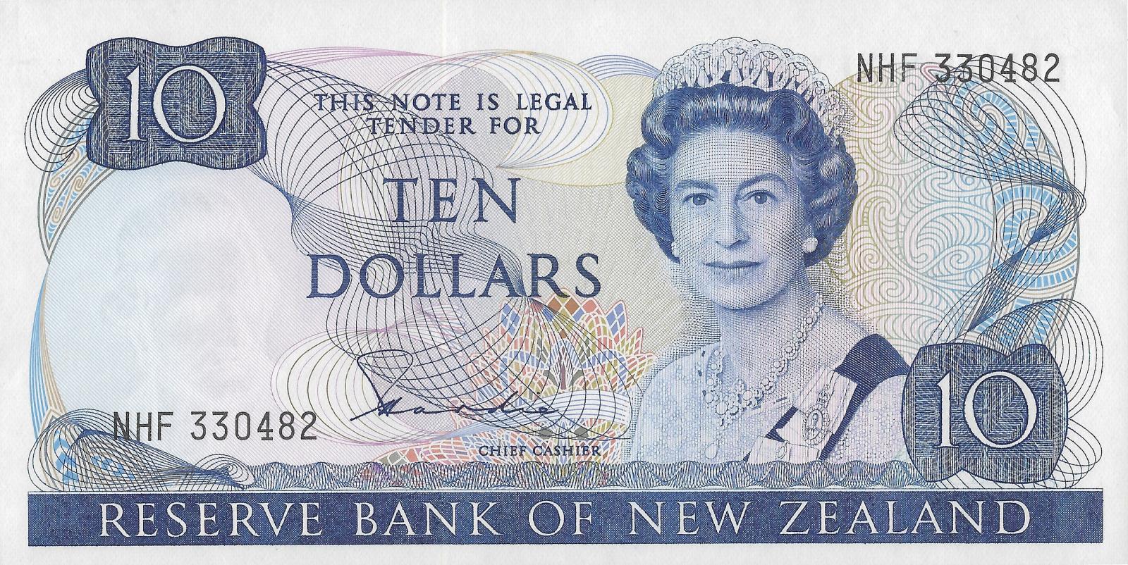 ND (1981-1985). Blue on multicolor underprint. Mature portrait of Queen Elizabeth II. Back: Kea at center and plants. Watermark: Capt. James Cook. Printer: BWC. With title: CHIEF CASHIER. Replacement note: Special serial number prefix and * suffix.