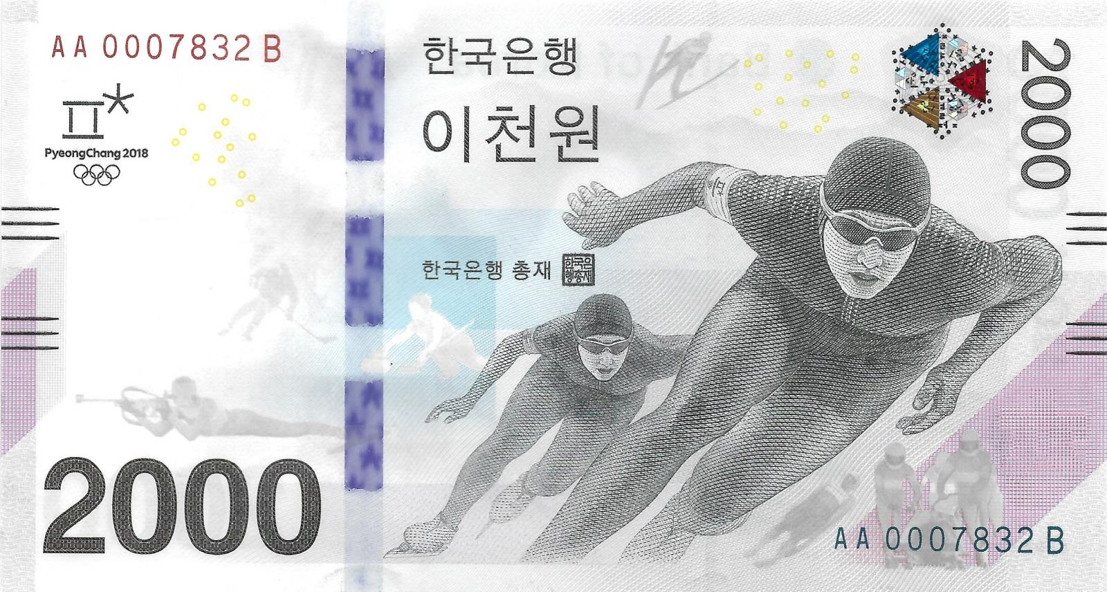2018. Commemorative note commemorating the 2018 PyeongChang 2018 winter olympics. Issued banknote without a folder.