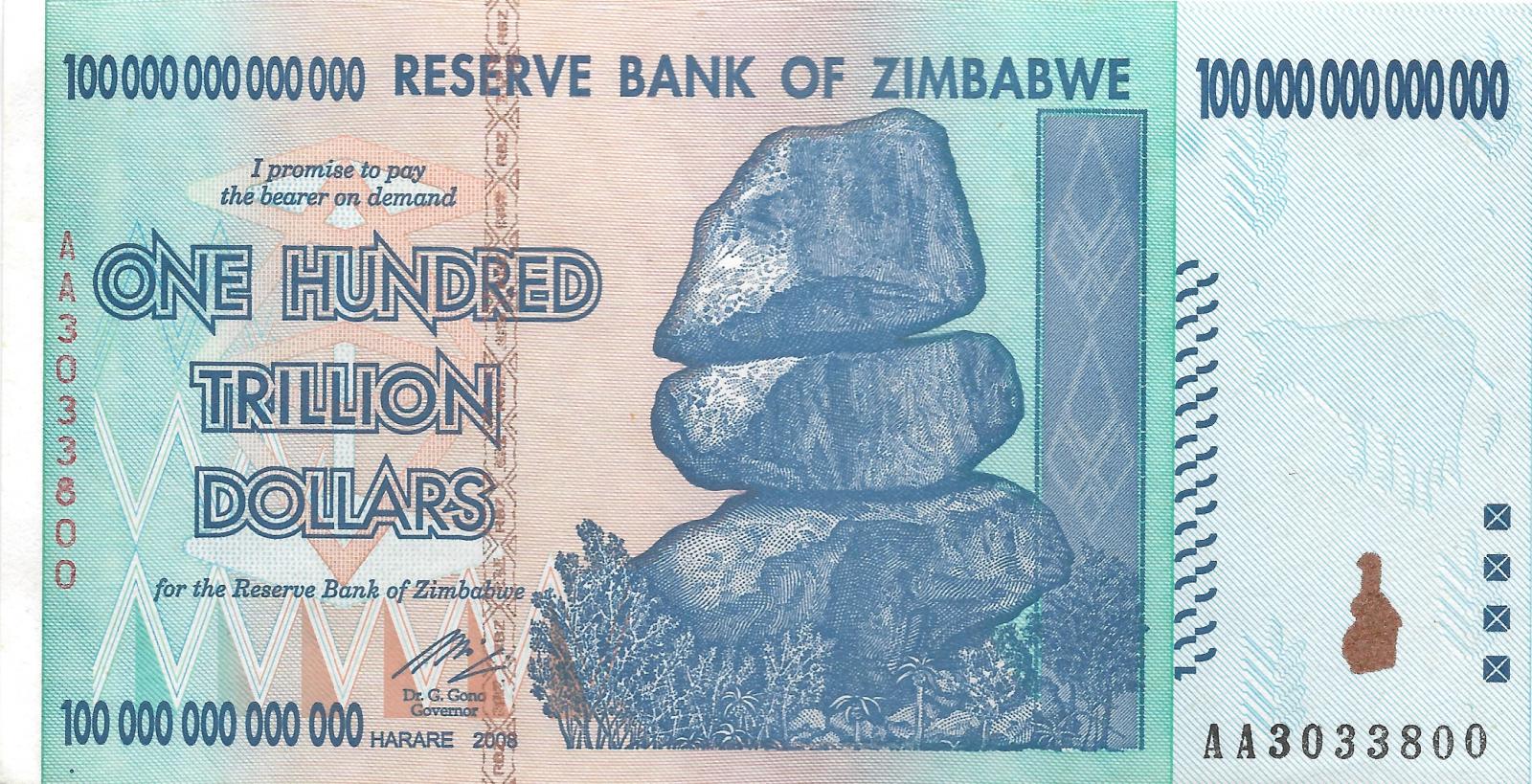 Zimbabwe pick 91a: 1.0E+14 Dollars from 2008