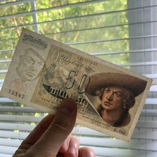 Rare Post WW2 WWII Era Germany Federal Republic 50 Mark Banknote German Currency
